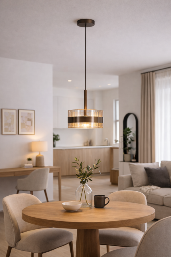 Hanglamp Enzo 1-lichts Brons/Amber Glas