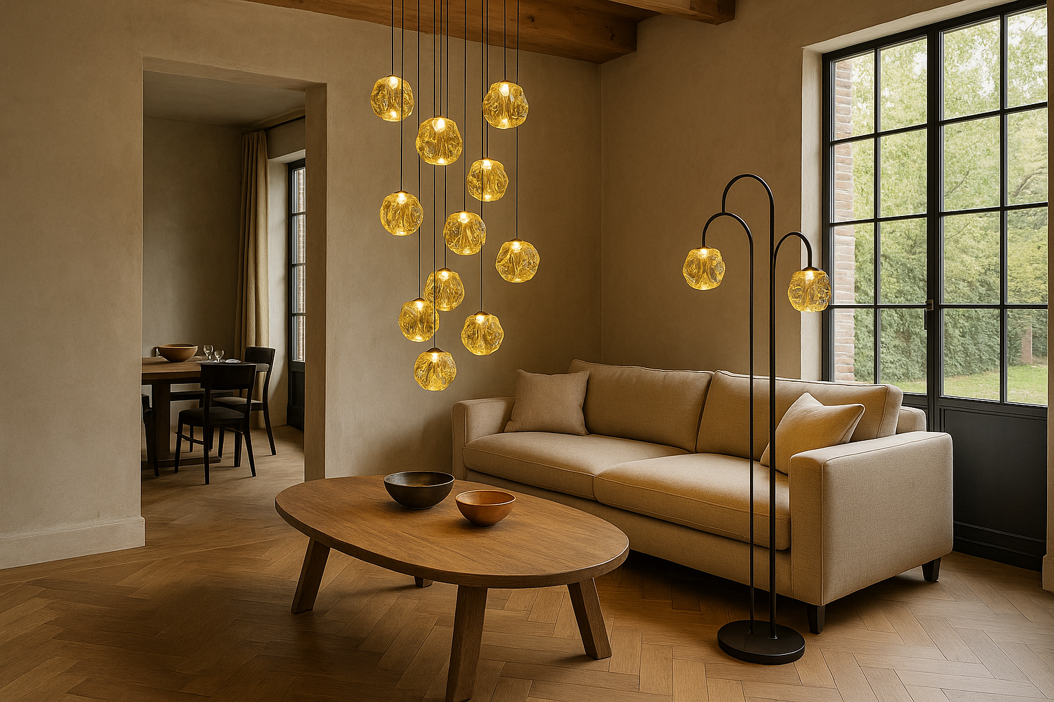 Wat de Melina lampen zo bijzonder maakt, zijn de organische, handgemaakte glazen kappen die het licht op een sfeervolle manier verspreiden. Elke lamp is een kunstwerk op zich, met een unieke structuur die zorgt voor een schitterend spel van licht en schaduw. Dit zorgt niet alleen voor aangename verlichting, maar ook voor een luxueuze uitstraling die de sfeer in huis versterkt. De combinatie van modern design en zachte lichtreflecties maakt de Melina collectie ideaal voor iedereen die op zoek is naar een stijlvolle en warme uitstraling in huis.