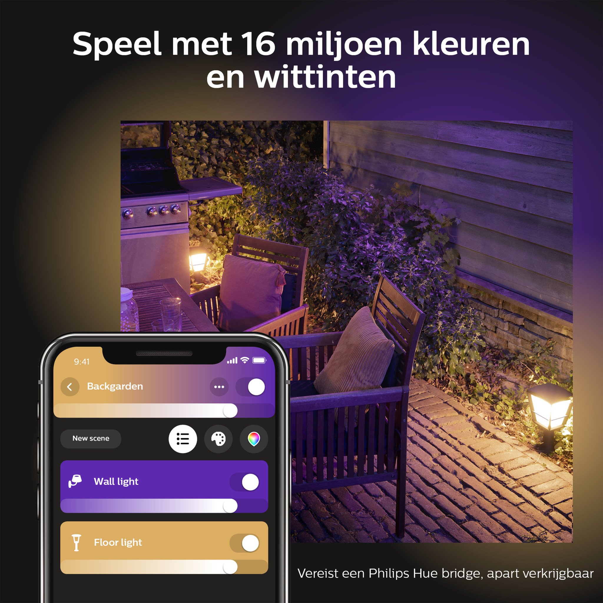 Deze lamp wordt aangesloten op de netspanning en maakt daarmee deel uit van de Outdoor netspanning collectie van Philips Hue.