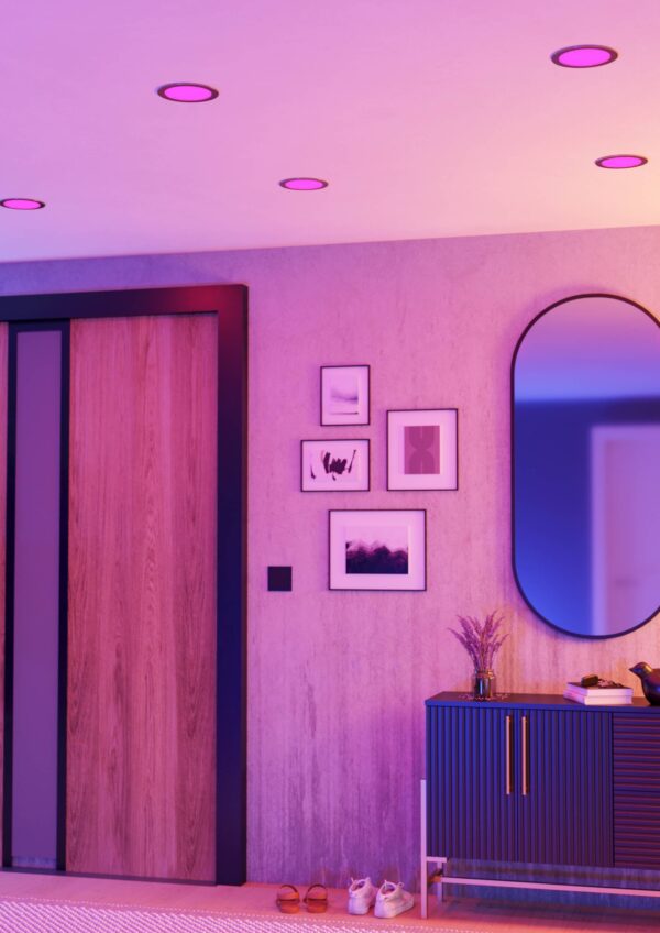 De spots met een diameter van 8,8 cm beschikken over RGB+CCT-technologie, waarmee zowel gekleurd licht als vrij instelbaar wit licht van warmwit (2700K) tot koelwit (6500K) mogelijk is. Ideaal voor gerichte lichtinrichting – of het nu sfeervol of functioneel is. Via het Connect.Z-systeem kunnen de lampen eenvoudig worden bediend via de AwoX Home Controle app, een apart verkrijgbare afstandsbediening of een wandschakelaar. Ook integratie met spraakassistenten is mogelijk. Het moderne design met zwarte rand en gesatineerde diffuser voegt zich onopvallend in plafonds – perfect voor woonruimtes, keukens of gangen met een slim verlichtingsconcept.
