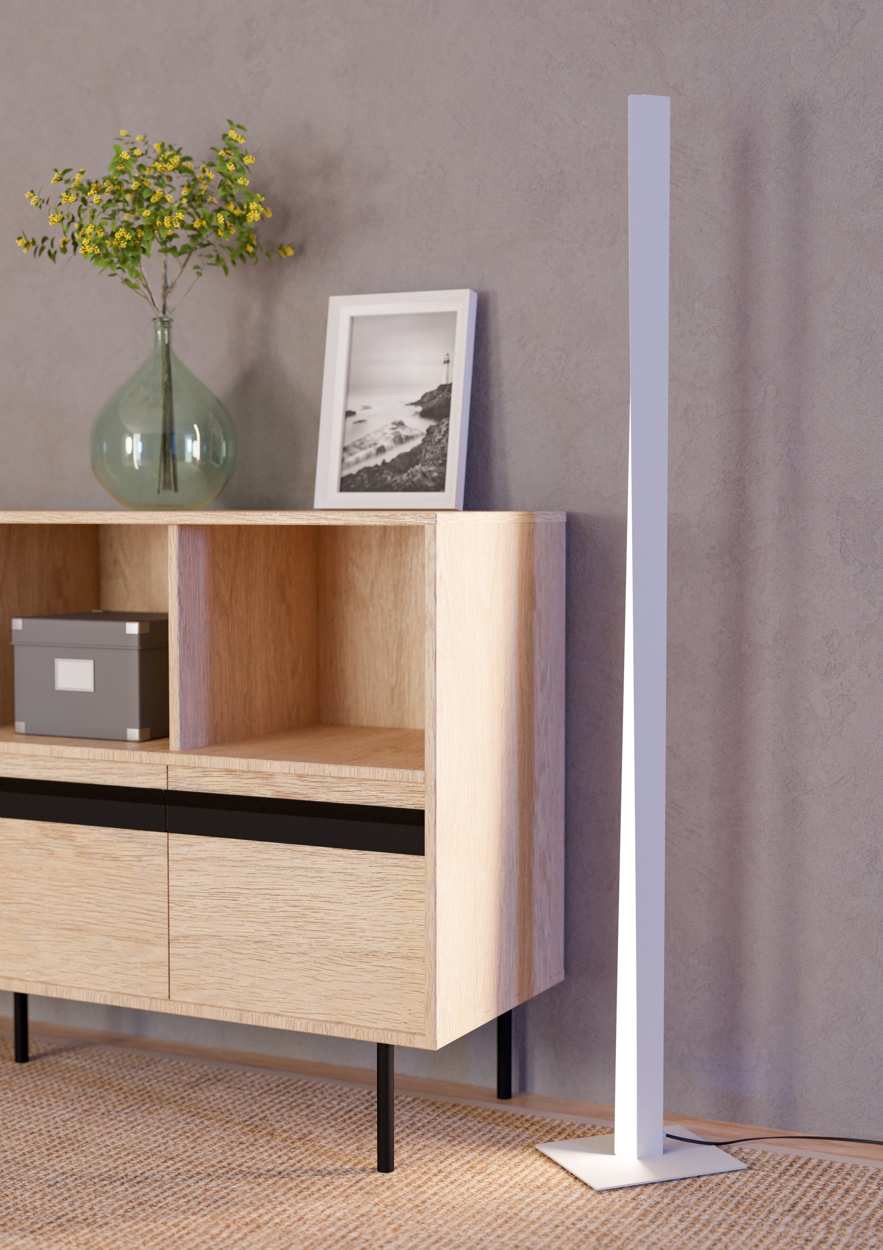 De Bolognano-Z vloerlamp wordt geleverd inclusief LED van 10,5 Watt, met een totaal lichtopbrengst van 3350 Lumen. Als onderdeel van het Eglo Connect.Z Smart-Home-systeem biedt vloerlamp flexibele lichtregeling in warmwitte tot koelwitte tinten en in RGB-kleuren (2700-6500K)– ideaal voor functionele verlichting en sfeervolle accenten.
