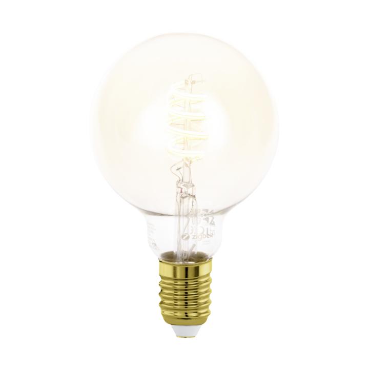 Ontdek de Connect.Z spiraal lichtbron van Eglo met warm, energiezuinig licht, eenvoudige installatie en slimme Connect Z-functionaliteiten voor optimaal gebruiksgemak. Dankzij het stijlvolle amberglas en het zichtbare spiraalfilament is deze globelamp een echte blikvanger die perfect tot zijn recht komt in een open armatuur en eenvoudig te bedienen is via smartphone of afstandsbediening.