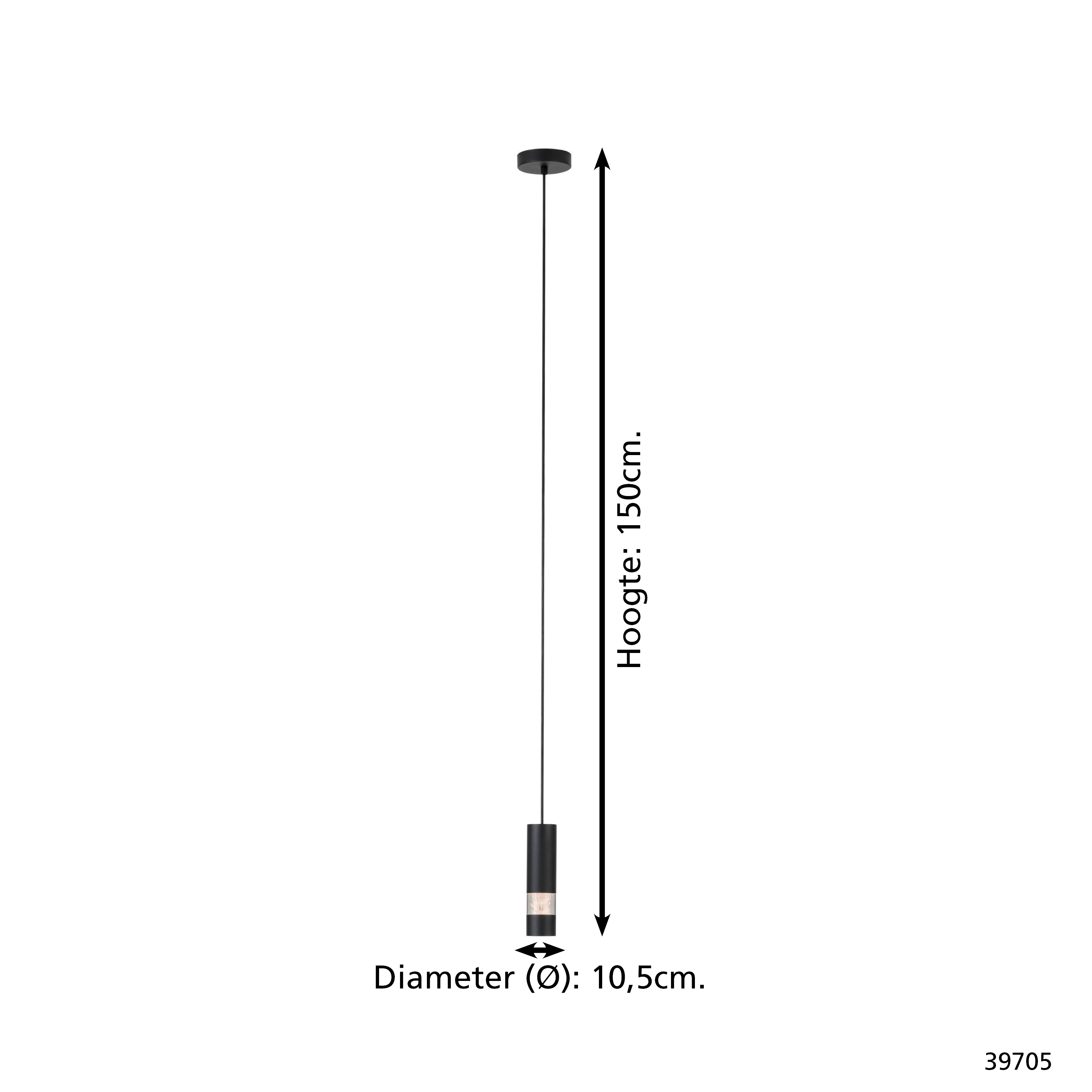 De Bernabeta hanglamp heeft een diameter van 10,5 cm en een verstelbare hoogte van max. 150 cm. Naast de 1-lichts hanglamp, bestaat de Bernabeta lampenserie ook uit hanglampen van 5-lichts en 10-lichts (rechte/ronde uitvoering).