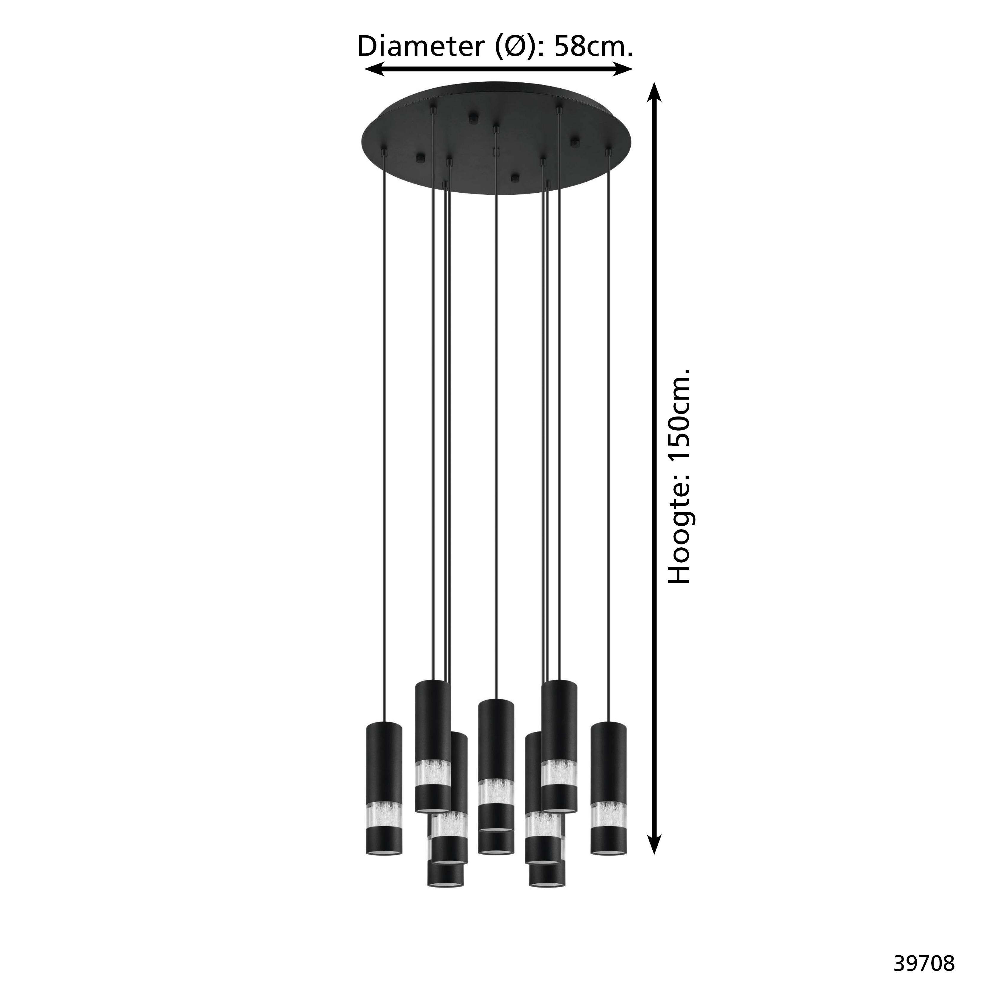 Hanglamp Bernabeta Zwart 10-lichts Rond