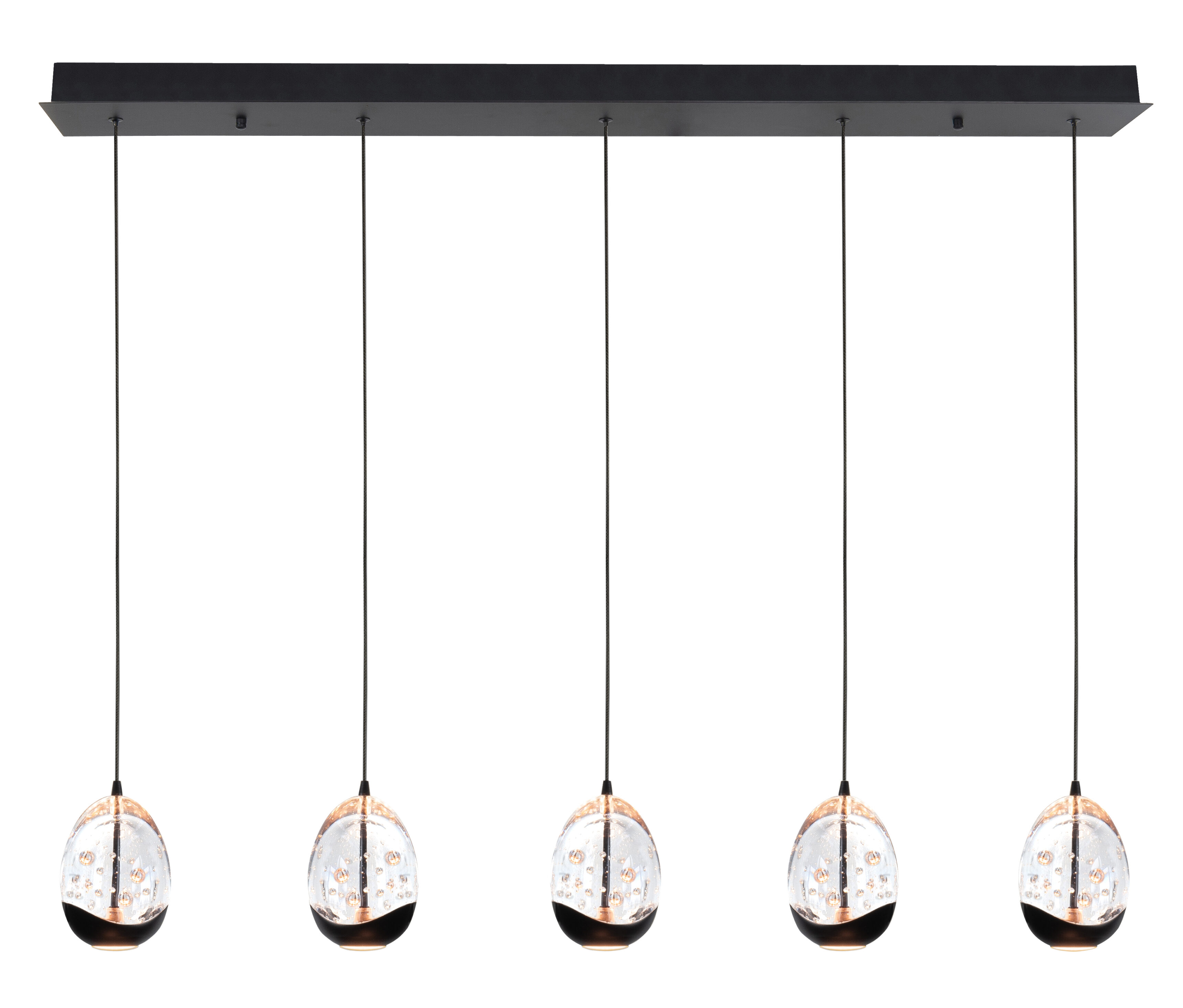 Deze schitterende hanglamp uit de Egg-serie van Highlight is een ware eyecatcher en combineert een uniek ontwerp met hoogwaardige verlichting. De glazen hanglamp is ontworpen met een elegante zwarte ophanging, waaraan vijf prachtige, heldere glazen eivormige lampen hangen. In elk van deze glazen eieren is een geïntegreerde LED-lichtbron verwerkt, die niet alleen zorgt voor een krachtige lichtopbrengst, maar ook een betoverend lichteffect creëert.