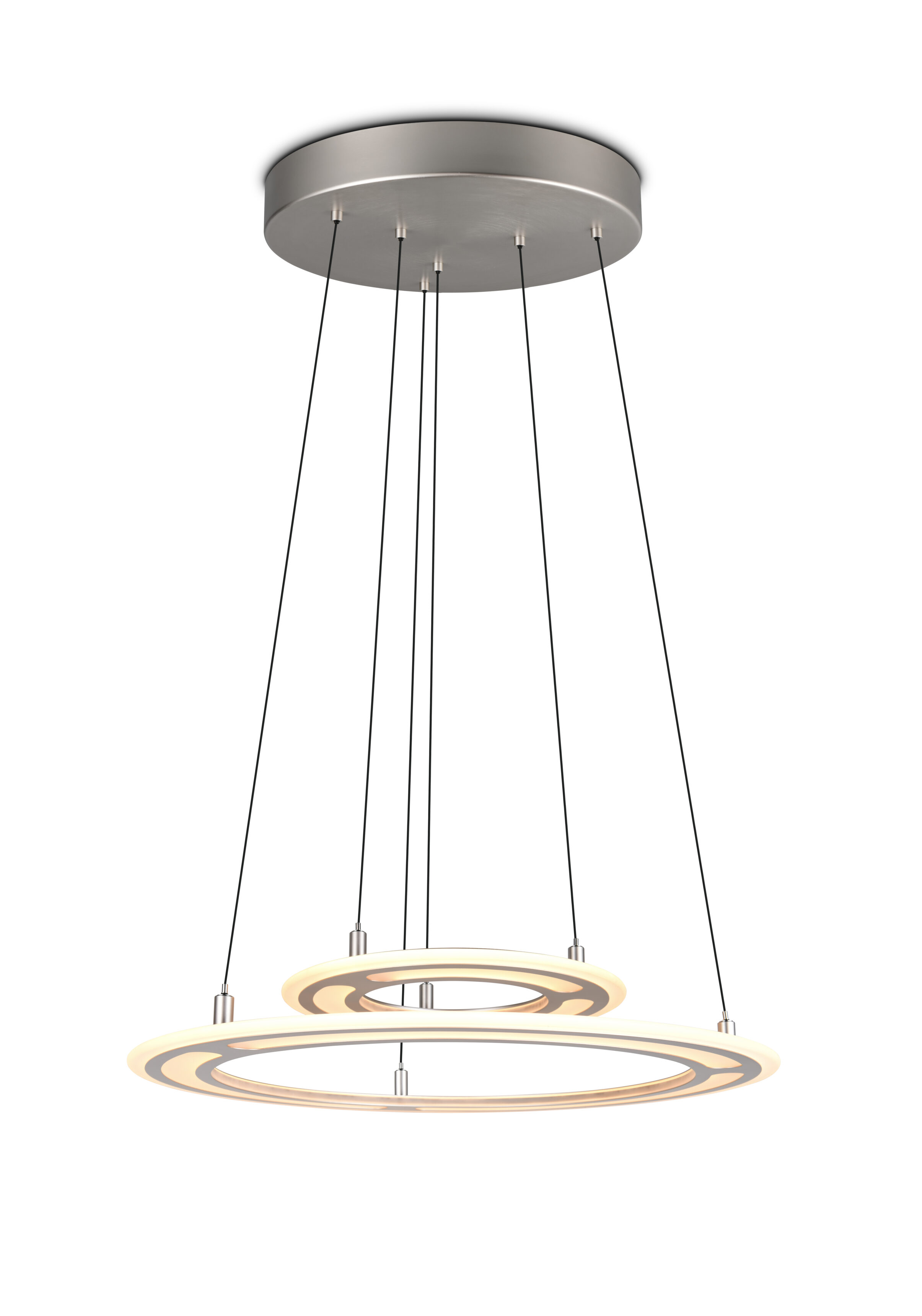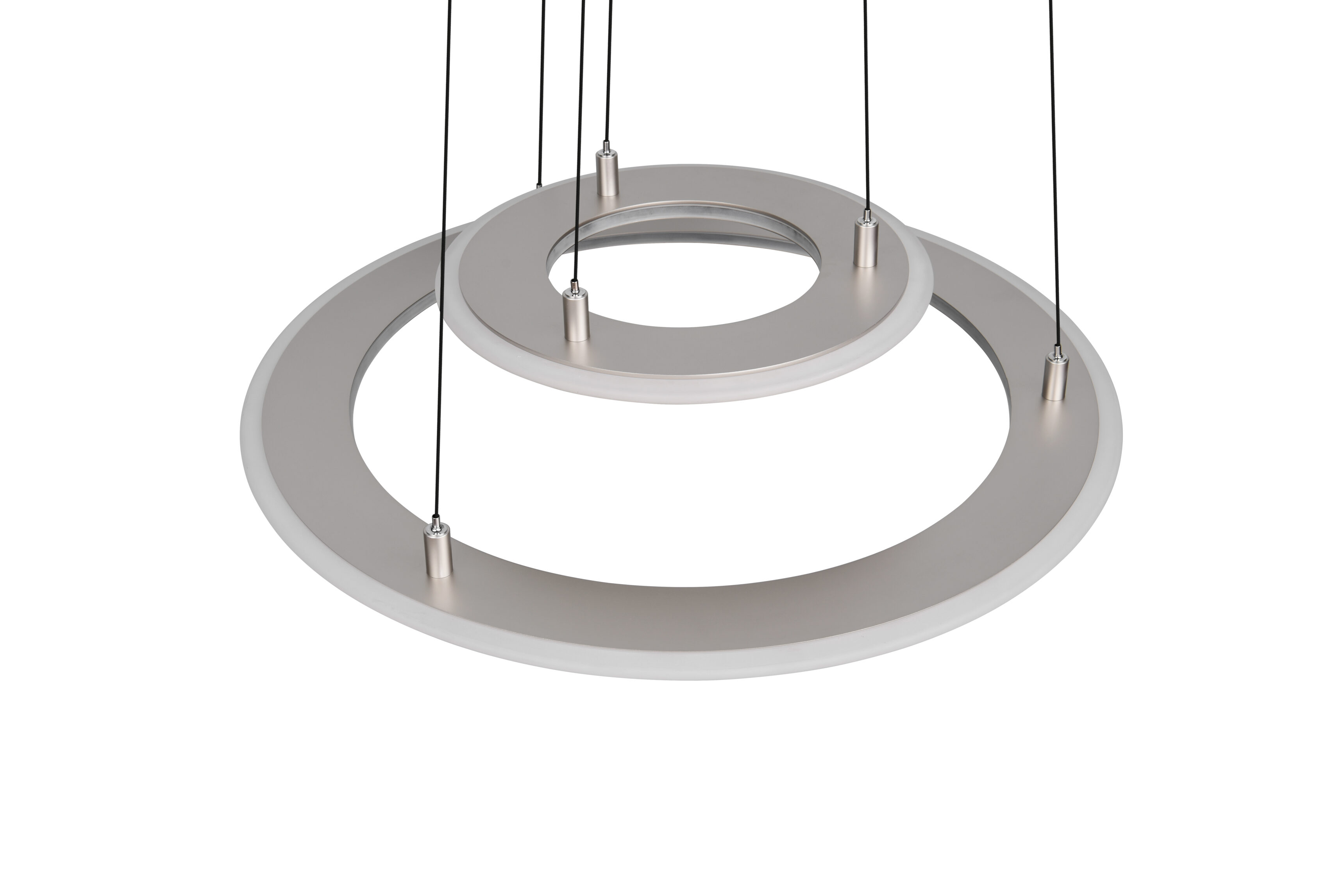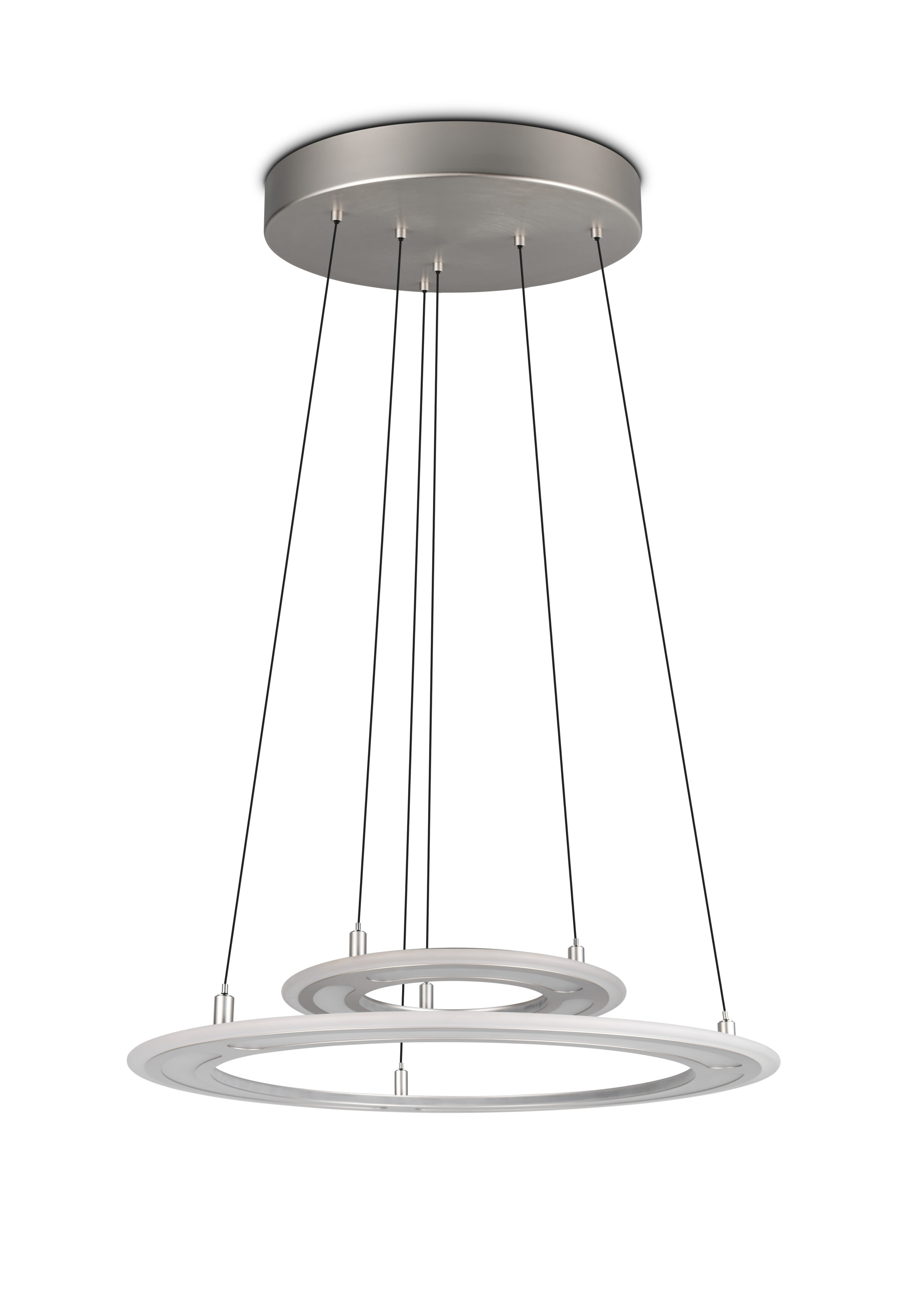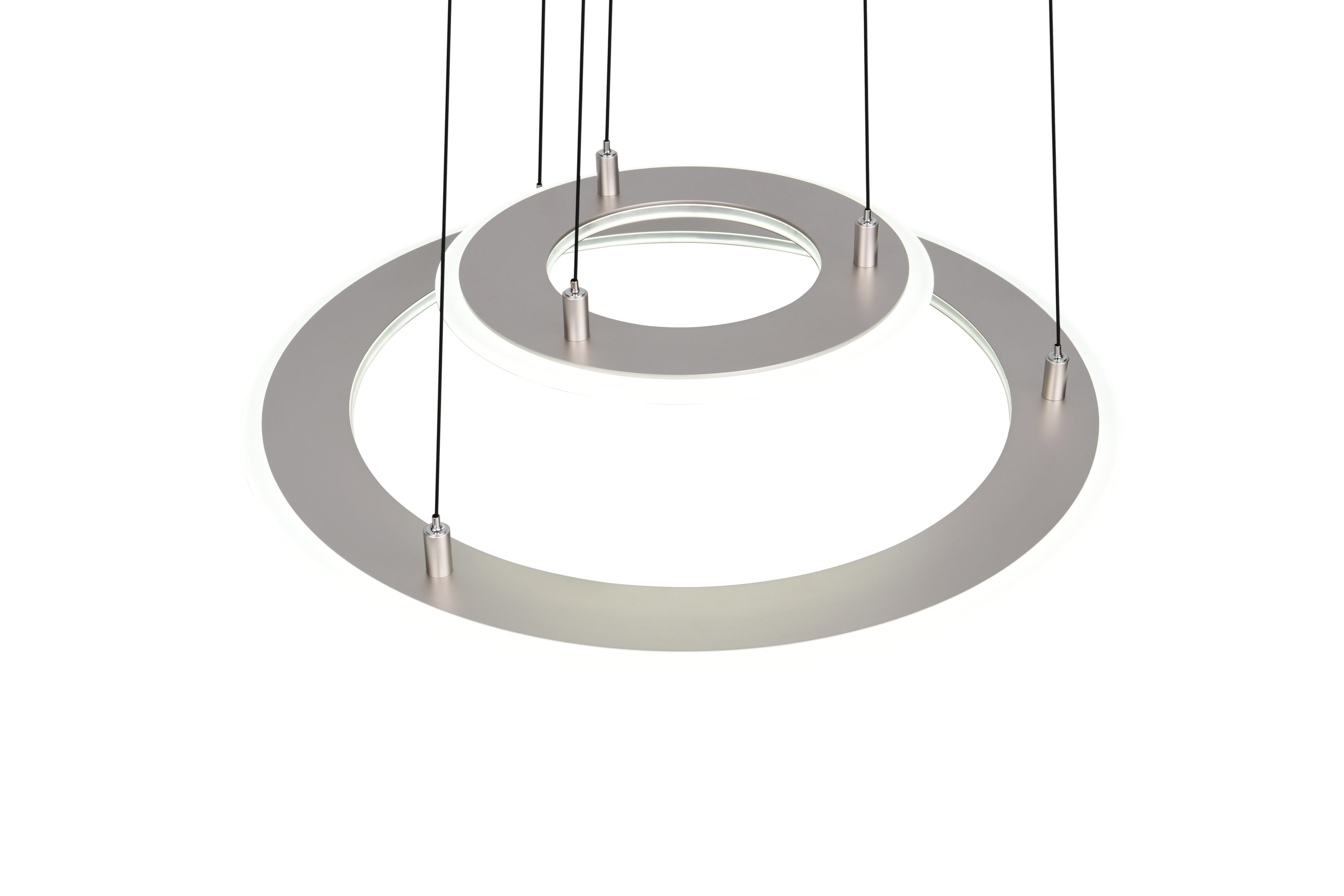De hanglamp Cromer 2-lichts wordt geleverd inclusief twee geïntegreerde LED-lichtbronnen van 53 watt met een totale lichtopbrengst van maar liefst 6200 lumen. De lamp bestaat uit twee ringen: de kleine ring heeft een diameter van 40 cm en de grote ring heeft een diameter van 72,5 cm. De ringen zijn in hoogte verstelbaar van 60 cm tot maximaal 180 cm. Naast de nikkelen uitvoering is de Cromer hanglamp ook verkrijgbaar in de kleuren zwart en beige of in een 1-lichts uitvoering.