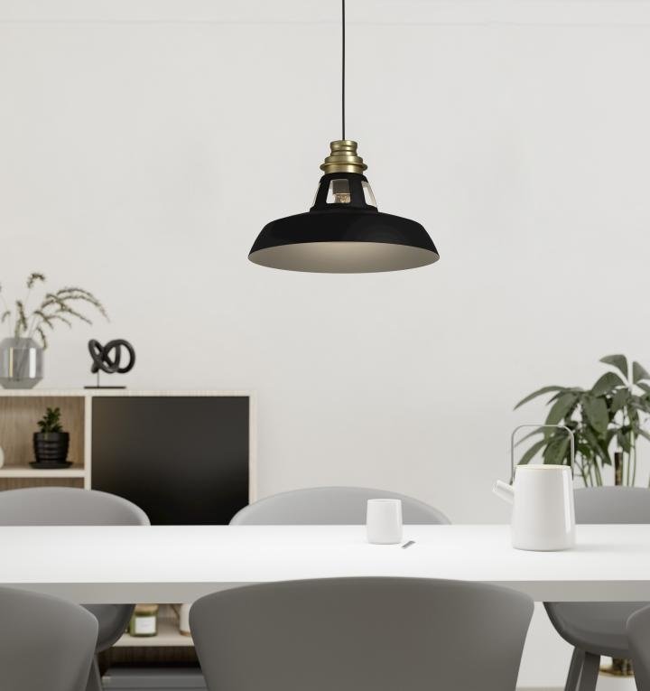 Een stoere 1-lichts hanglamp uit de Espinardo serie van Eglo voor bijvoorbeeld boven uw mooie eettafel.