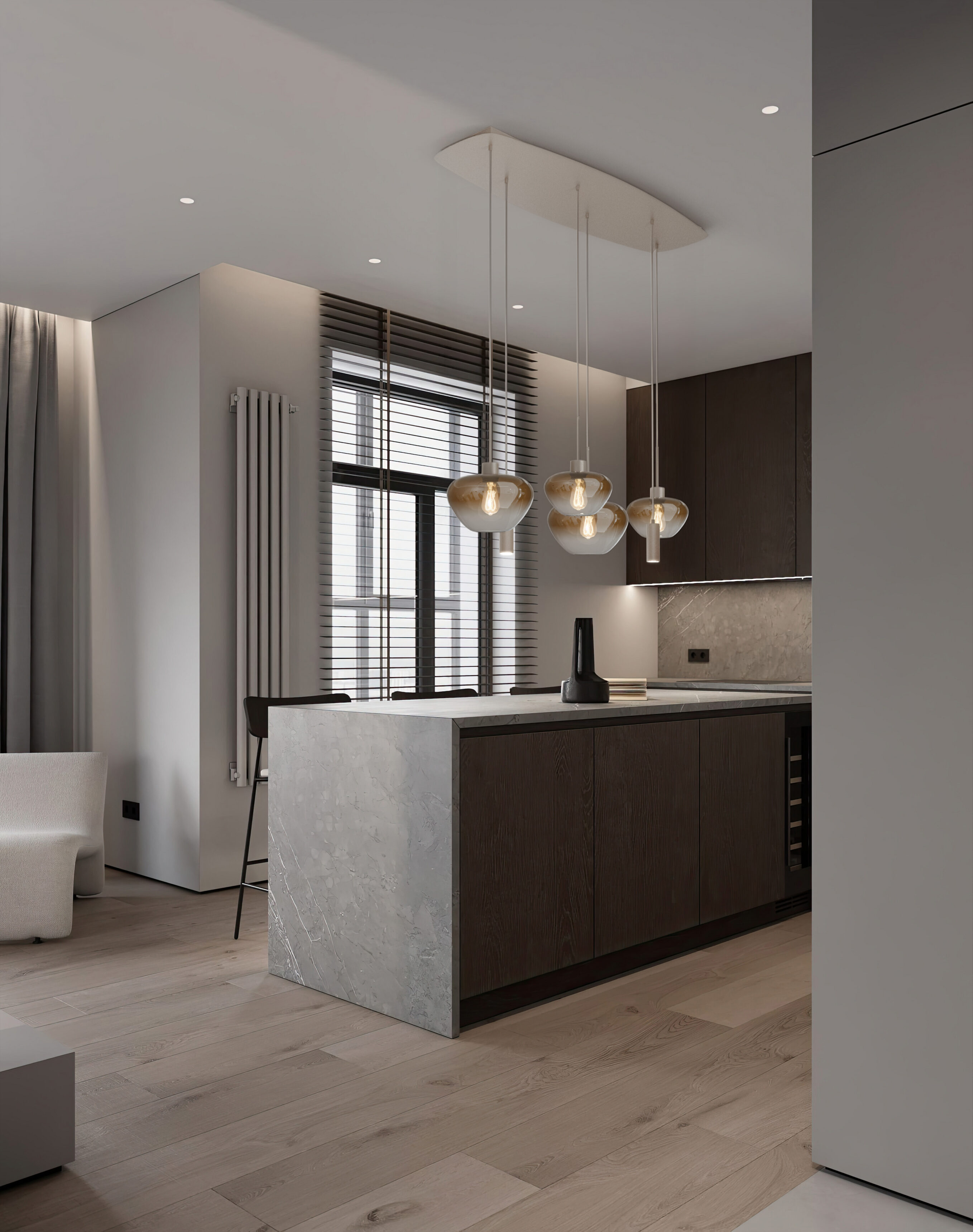 Naast de glazen kappen beschikt de hanglamp over twee extra pendels met een GU10 fitting. Deze pendels voegen een functioneel accent toe en zijn ideaal om gericht licht te creëren, bijvoorbeeld op het midden van de tafel of het kookeiland. Door de combinatie van E27 en GU10 ontstaat er een mooi samenspel tussen sfeerlicht en praktisch licht, waardoor de lamp zowel overdag als ’s avonds perfect tot zijn recht komt.