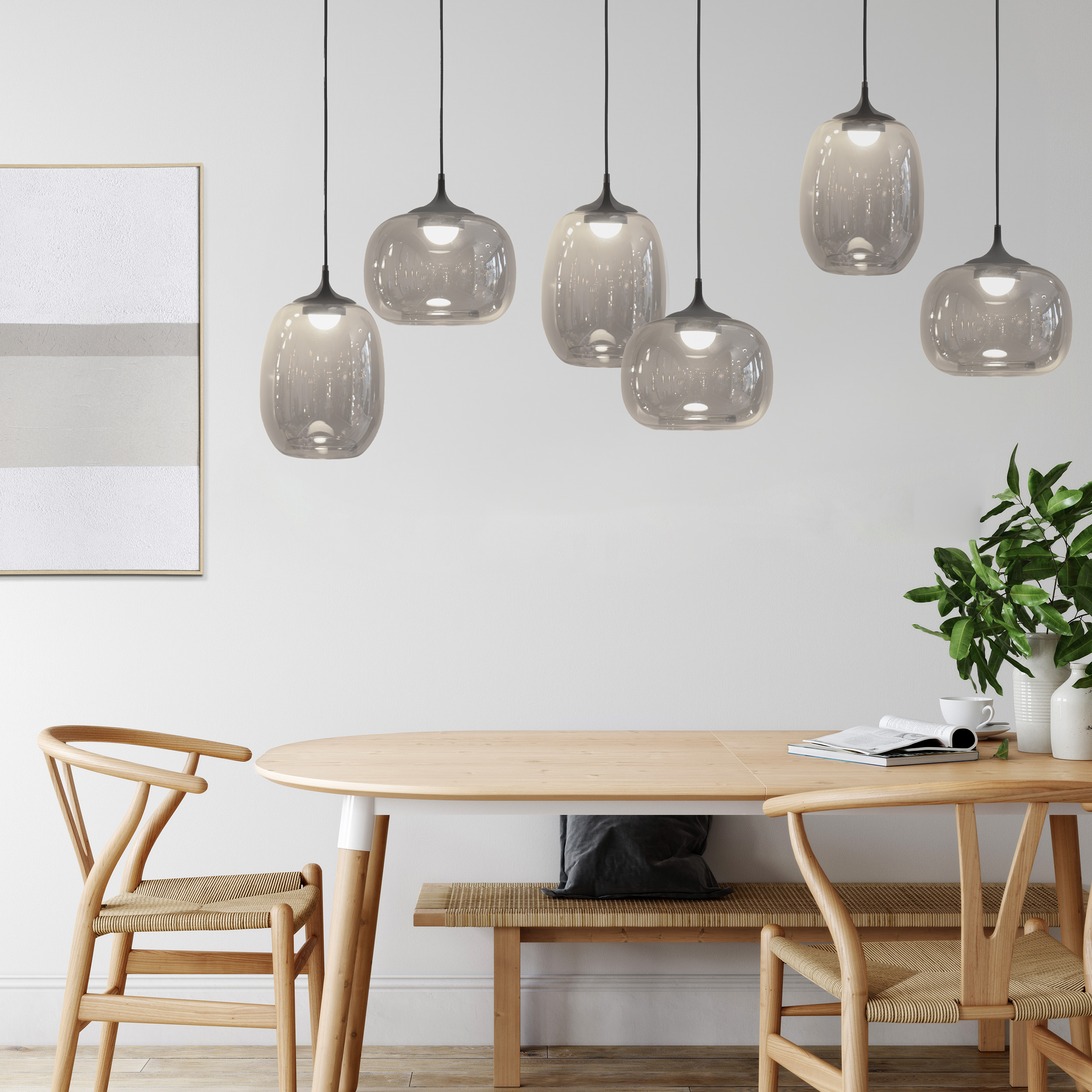 Voeg met de hanglamp Larva van Eglo STARS OF LIGHT zowel functionaliteit als luxueuze stijl toe aan uw woonruimte. De 6-lichts hanglamp bestaat uit 6 prachtige glazen lampenkappen met een trendy smoke tint, gecombineerd met geïntegreerd Ledverlichting. De lichtsterkte kunt u gemakkelijk naar wens aanpassen met de meegeleverde afstandsbediening. Zo kunt u voor elk gelegenheid de gewenste sfeer creëren!