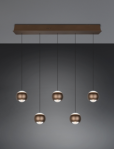De Orbit 5-lichts hanglamp wordt geleverd met 5 LED-lampen van elk 8 Watt. Deze LED-lampen hebben een kleurtemperatuur van 2300/3000/4000 Kelvin en produceren een totale lichtopbrengst van 4800 Lumen. Elke bol produceert afzonderlijk 960 lumen. De hanglamp is voorzien van zowel een lichtpunt boven als onder, waardoor een uniek en sfeervol lichteffect ontstaat.