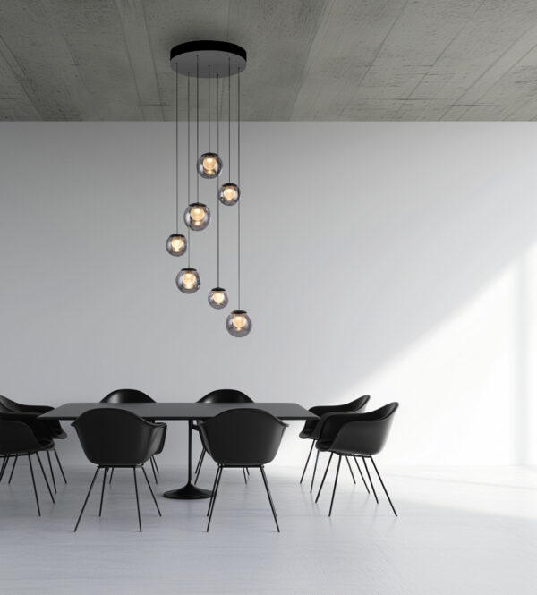 Met een krachtige 10W LED-lichtbron en 1100 lumen levert de Pure Clipse zowel sfeer als functionaliteit. De lamp heeft een diameter van 20 cm en maximale hoogte van 180 cm. De elegante grijze afwerking en het minimalistische ontwerp maken hem tot een echte blikvanger in elk interieur.
