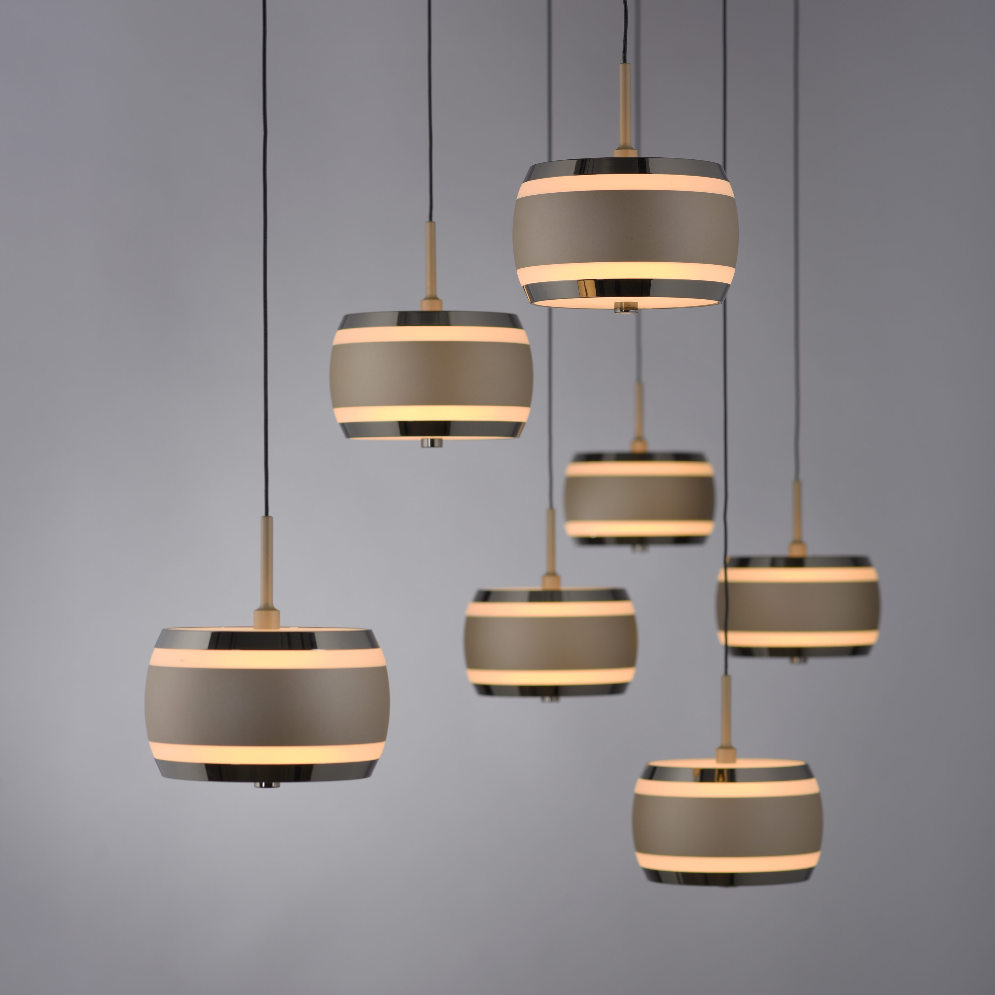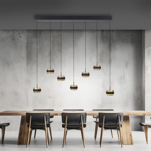 De PURE Falling Rings 7-lichts hanglamp in brons brengt warmte, elegantie en moderne luxe samen in één uniek ontwerp.