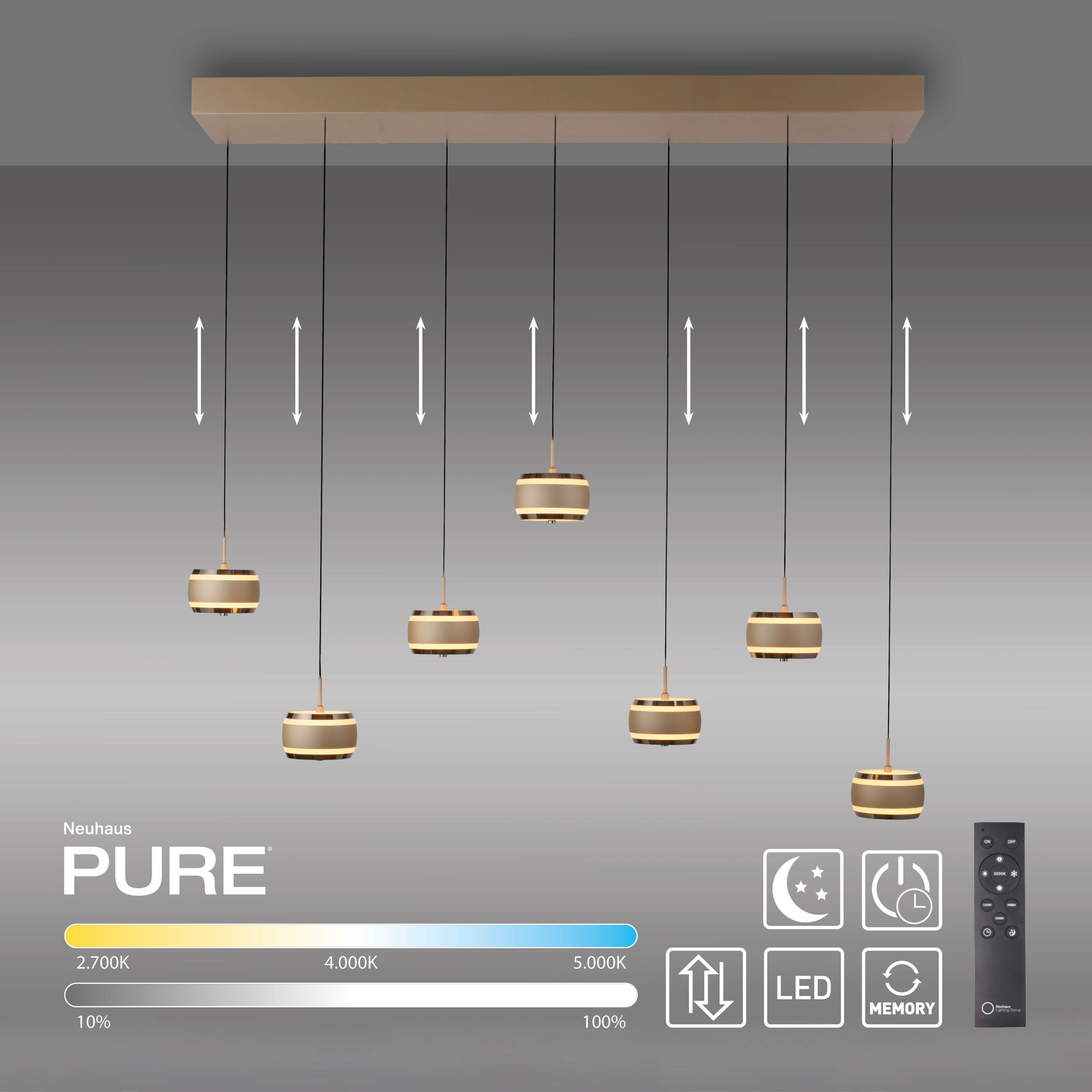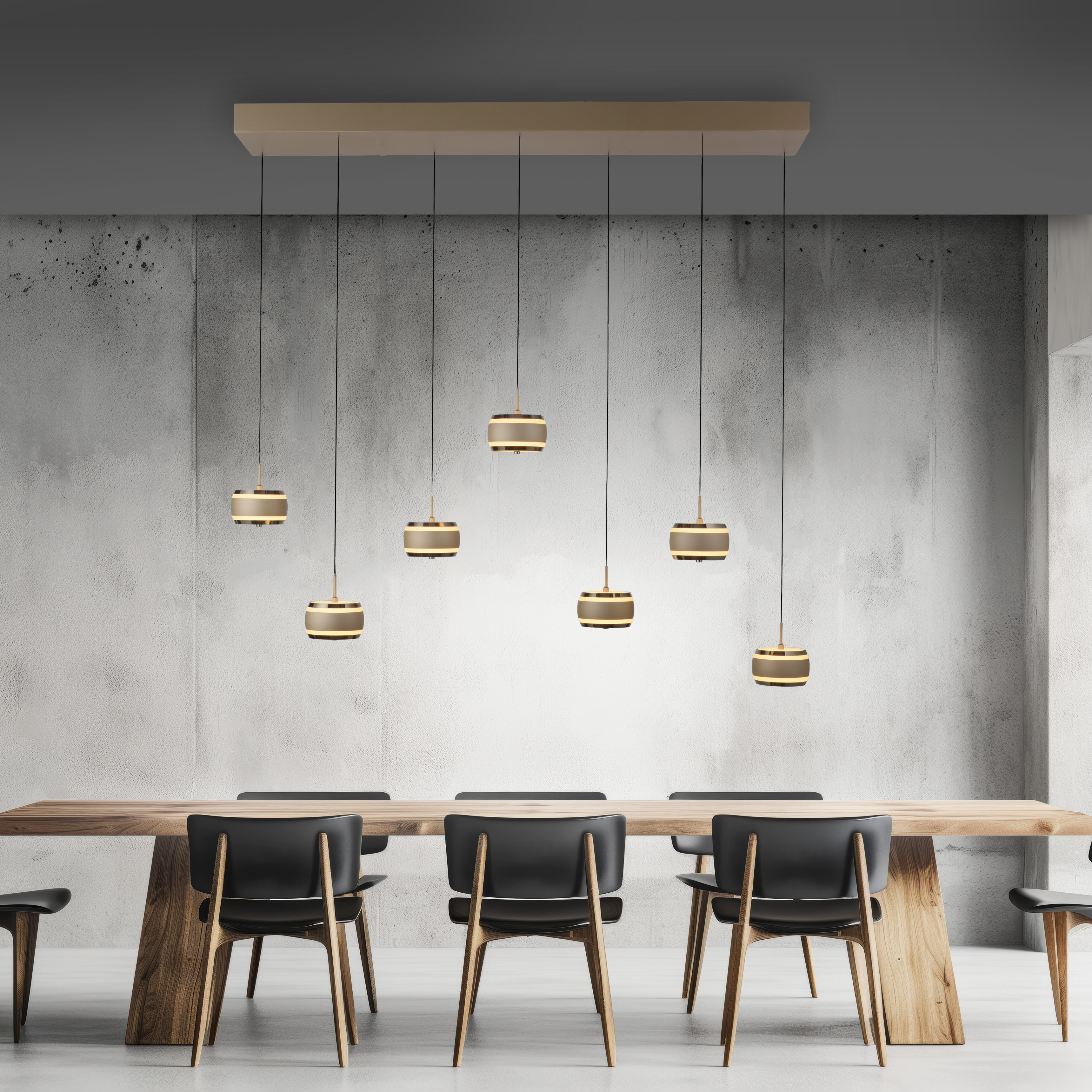 De PURE Falling Rings 7-lichts hanglamp in brons brengt warmte, elegantie en moderne luxe samen in één uniek ontwerp. De zeven hangende ringen in een verfijnde Bronze-afwerking zorgen voor een zacht, uitnodigend lichtbeeld dat perfect past boven de eettafel of in een sfeervolle woonkamer. Dankzij het slimme Comfort Lift-systeem is elke ring afzonderlijk in hoogte verstelbaar van 80 tot 200 cm. Zo creëer je eenvoudig een compositie die past bij jouw interieur en de gewenste sfeer. Met een lengte van 132 cm en een breedte van 29 cm vormt deze lamp een stijlvolle blikvanger in elke ruimte.