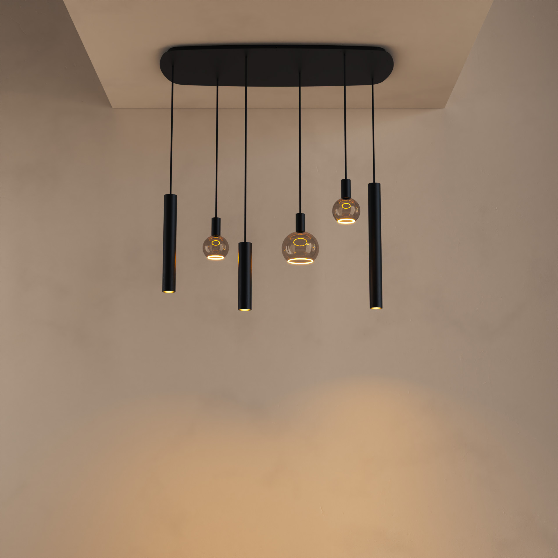 Lichtbundel – Ztahl Riva Deens Ovaal (3x E27 Segula lichtbronnen + 3x GU10)