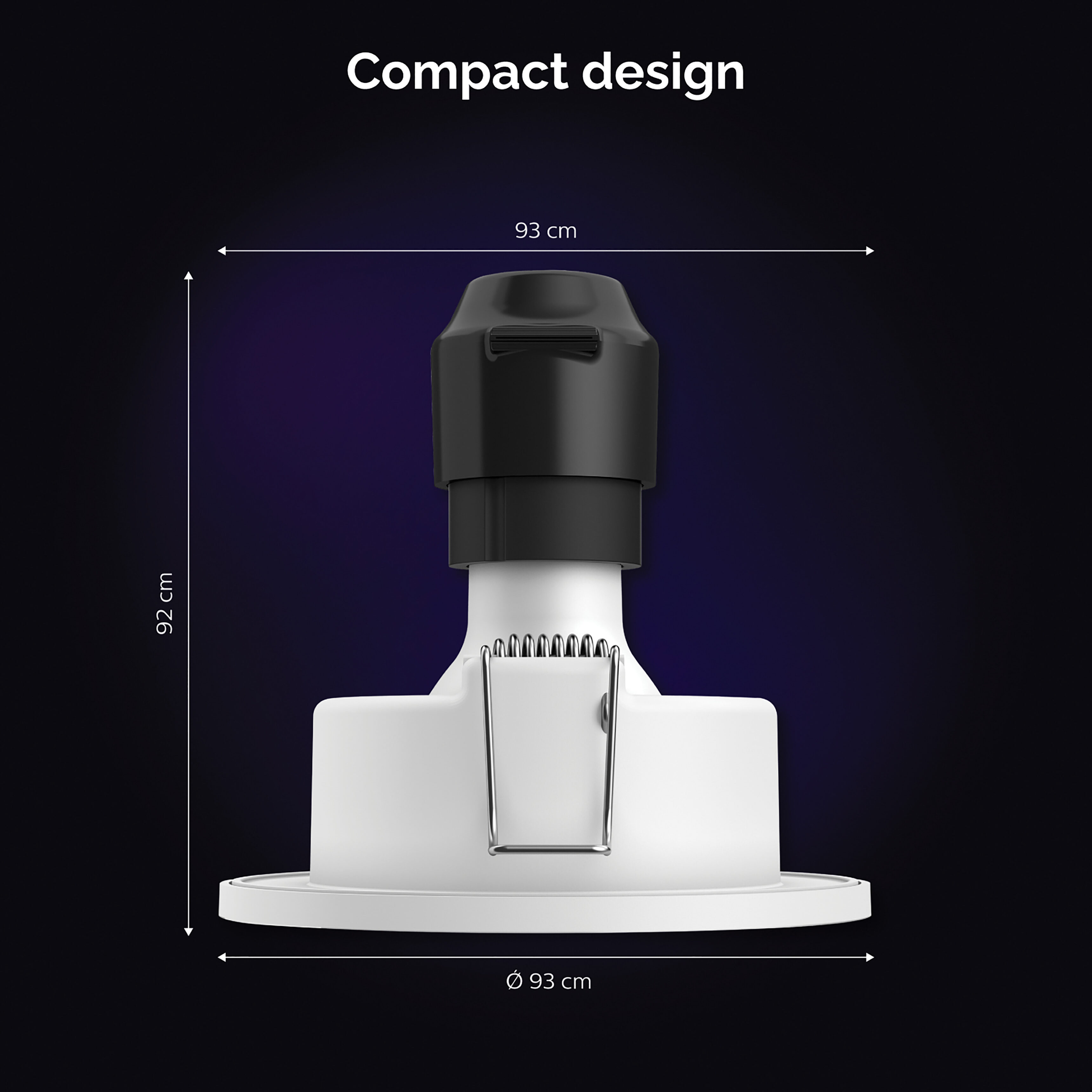De diameter van de spot is 9,3 cm en de hoogte is 9,2 cm. De spot heeft een GU10-fitting en wordt geleverd inclusief lichtbron. De spot is gemaakt van kunststof en is afgewerkt in de kleur chroom, ook verkrijgbaar in de kleuren zwart of wit.