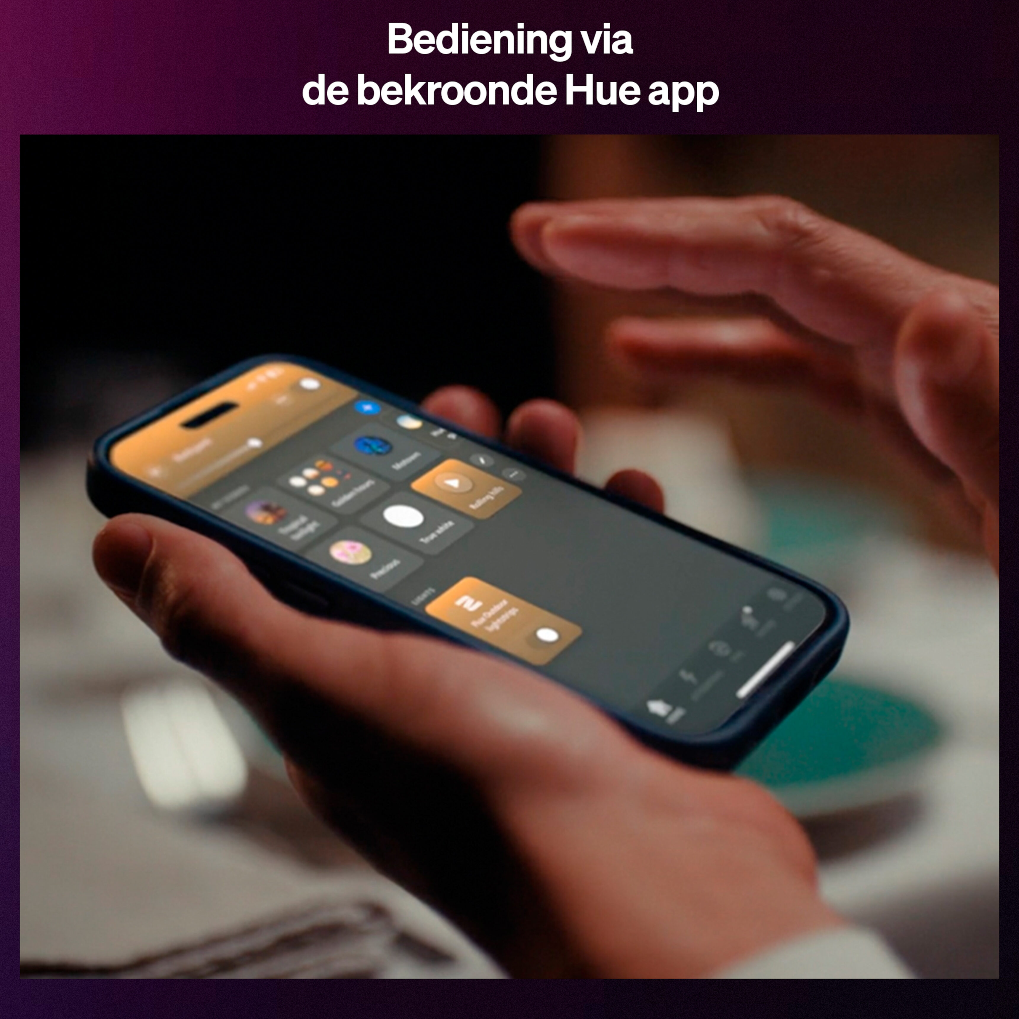 Bediening verloopt eenvoudig via je mobiel met de Hue app. Hiermee stel je kleurverlopen, lichtscènes en automatiseringen in en integreer je de strip in je slimme woning. Dankzij de IP20-classificatie is deze LED strip geschikt voor gebruik in droge binnenruimtes. De Philips Hue Essential Flex LED Strip is daarmee een ideale keuze voor wie creatieve, moderne en slimme binnenverlichting wil combineren in één veelzijdige oplossing.
