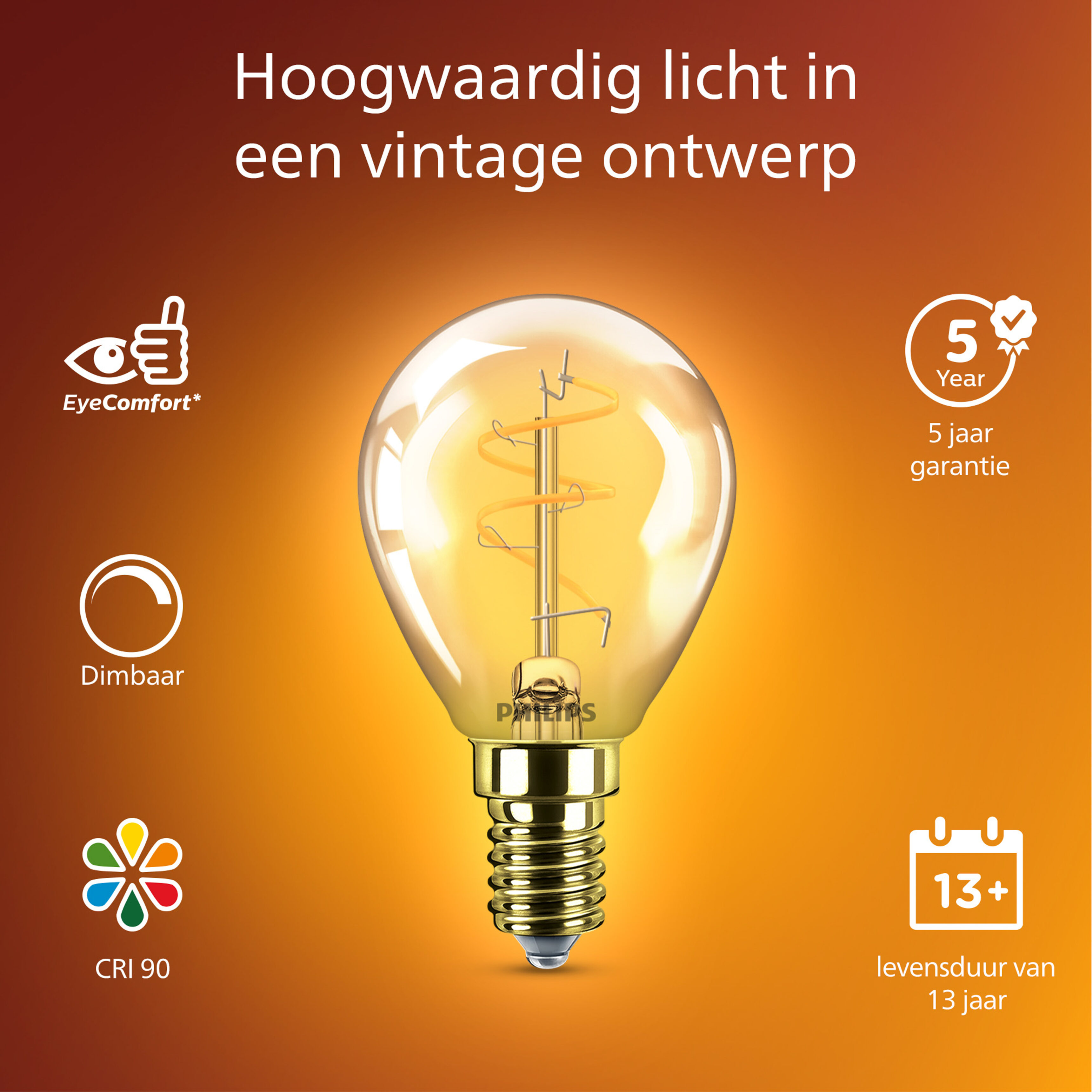 Philips Vintage LED E14 Kogellamp Goud – 15W – Dimbaar Extra warmwit licht