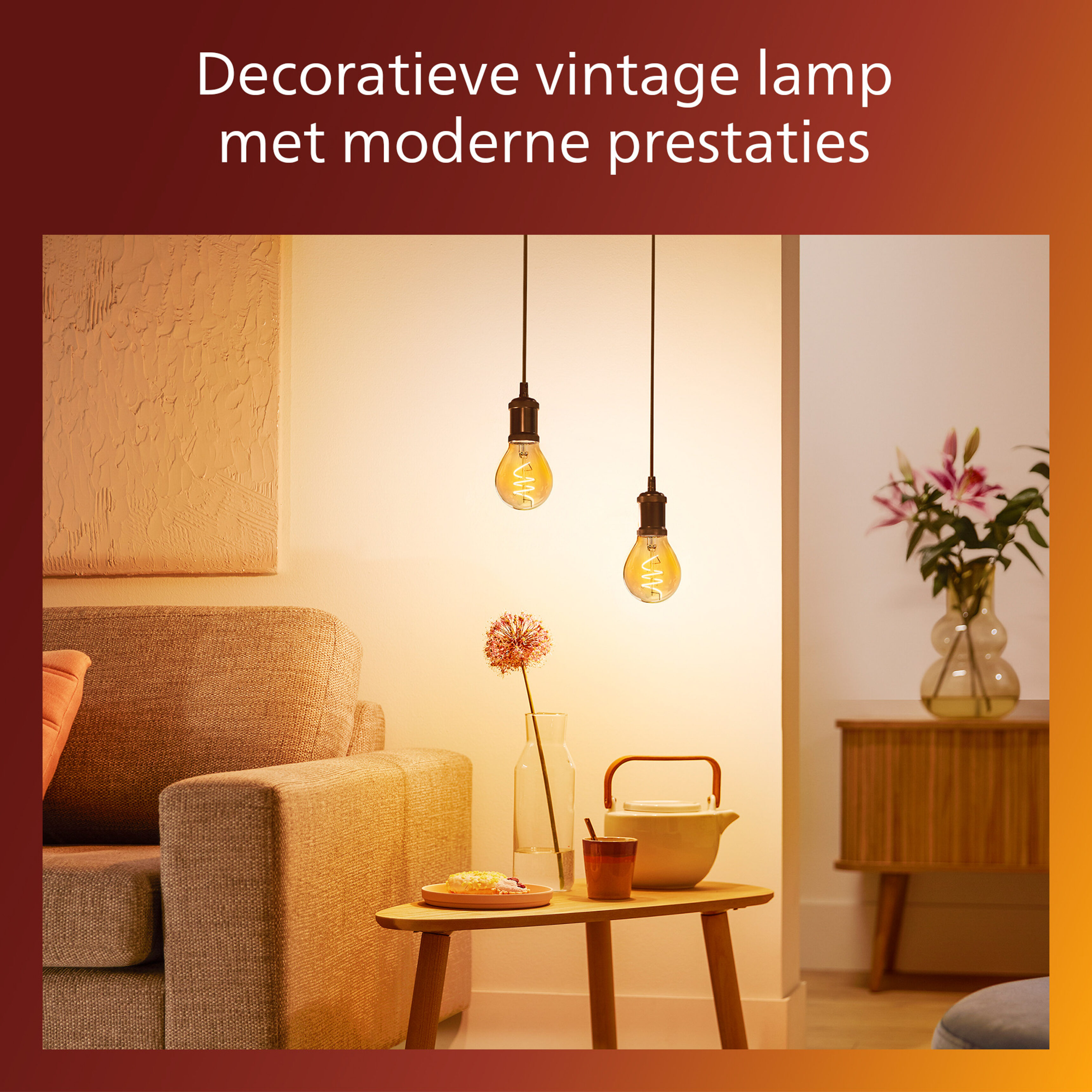 Deze Philips LED kogellamp is zowel decoratief als functioneel. Het vintage ontwerp doet denken aan een klassieke gloeilamp door het zichtbare filament dat een aangenaam extra warmwit licht geeft, dat ook nog eens dimbaar is! Je krijgt hierdoor makkelijk meer sfeer in huis, ook als de lampen uit staan.