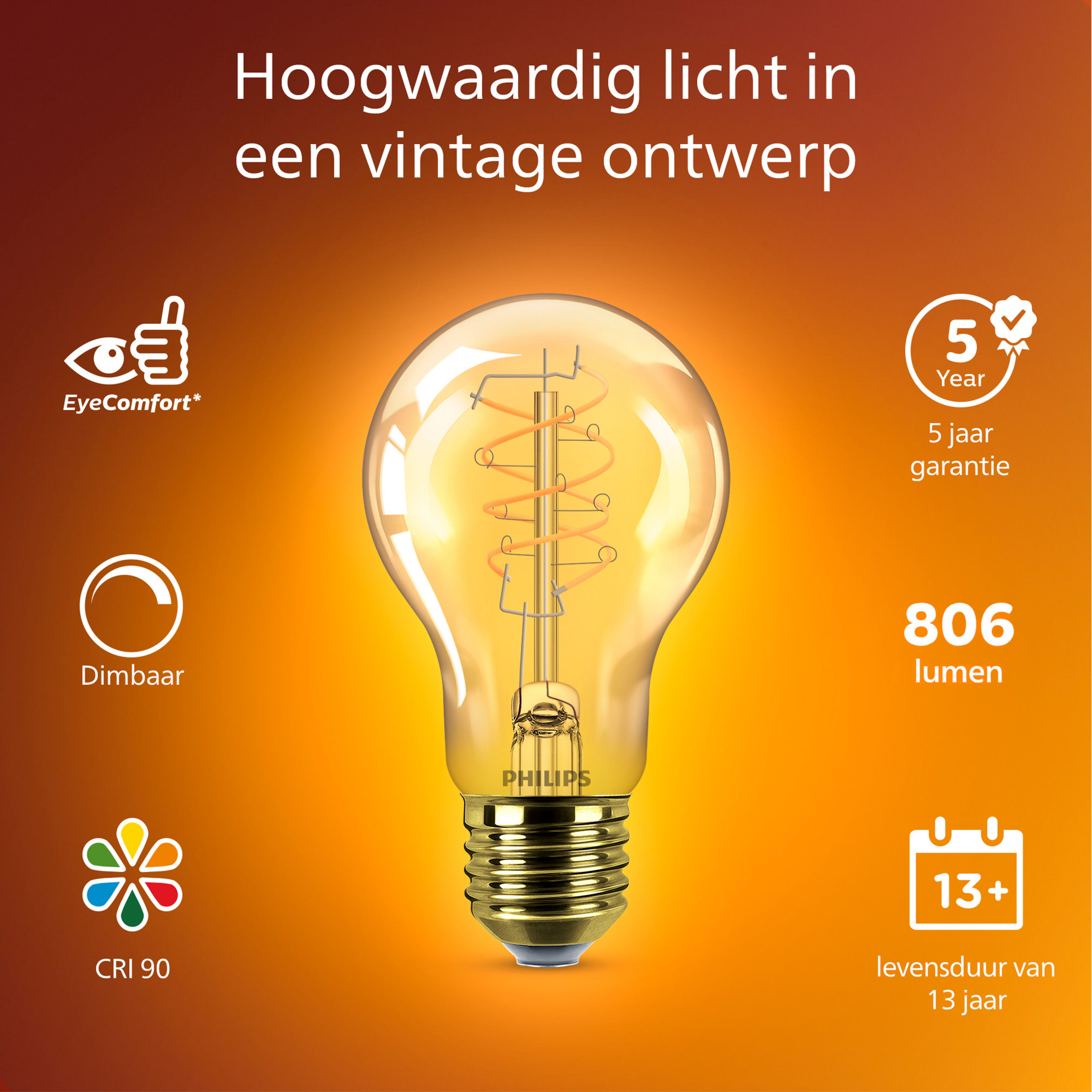Philips Vintage LED E27 Standaard A60 Goud – 60W – Dimbaar Extra warmwit licht
