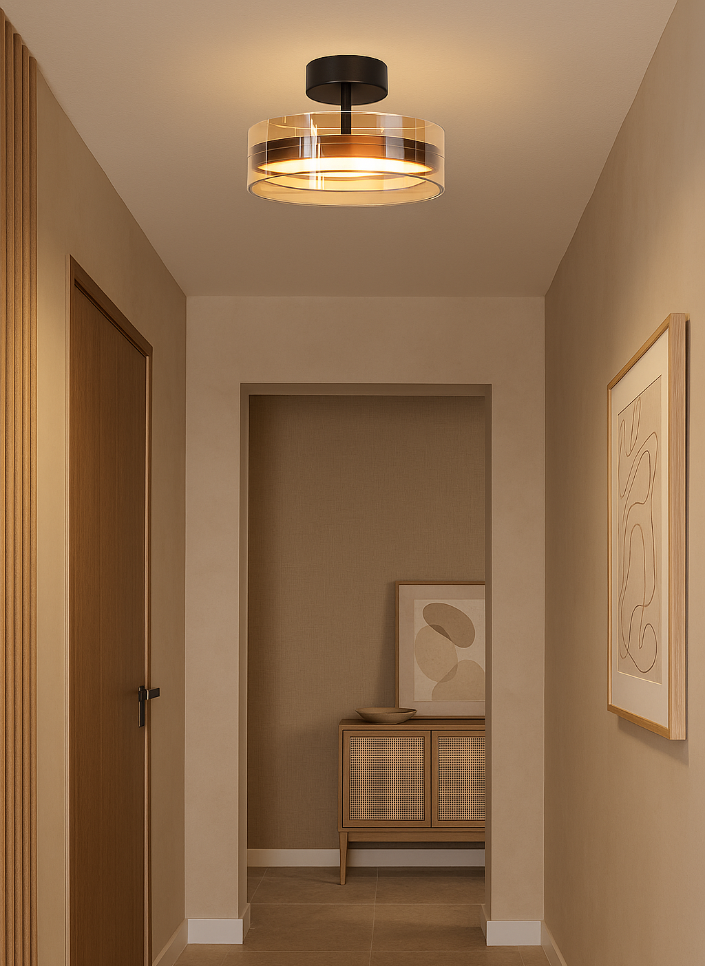Met een diameter van 30 centimeter en een hoogte van 18,5 centimeter is deze plafondlamp compact, maar opvallend genoeg om karakter toe te voegen aan de ruimte. De geïntegreerde lichtbron biedt een krachtig licht van 3060 lumen bij een kleurtemperatuur van 2700 Kelvin, wat zorgt voor een warm wit licht dat zowel functioneel als gezellig aanvoelt. Dankzij de mogelijkheid om de lamp te dimmen via een externe dimmer, pas je de lichtsterkte eenvoudig aan naar de gewenste sfeer.