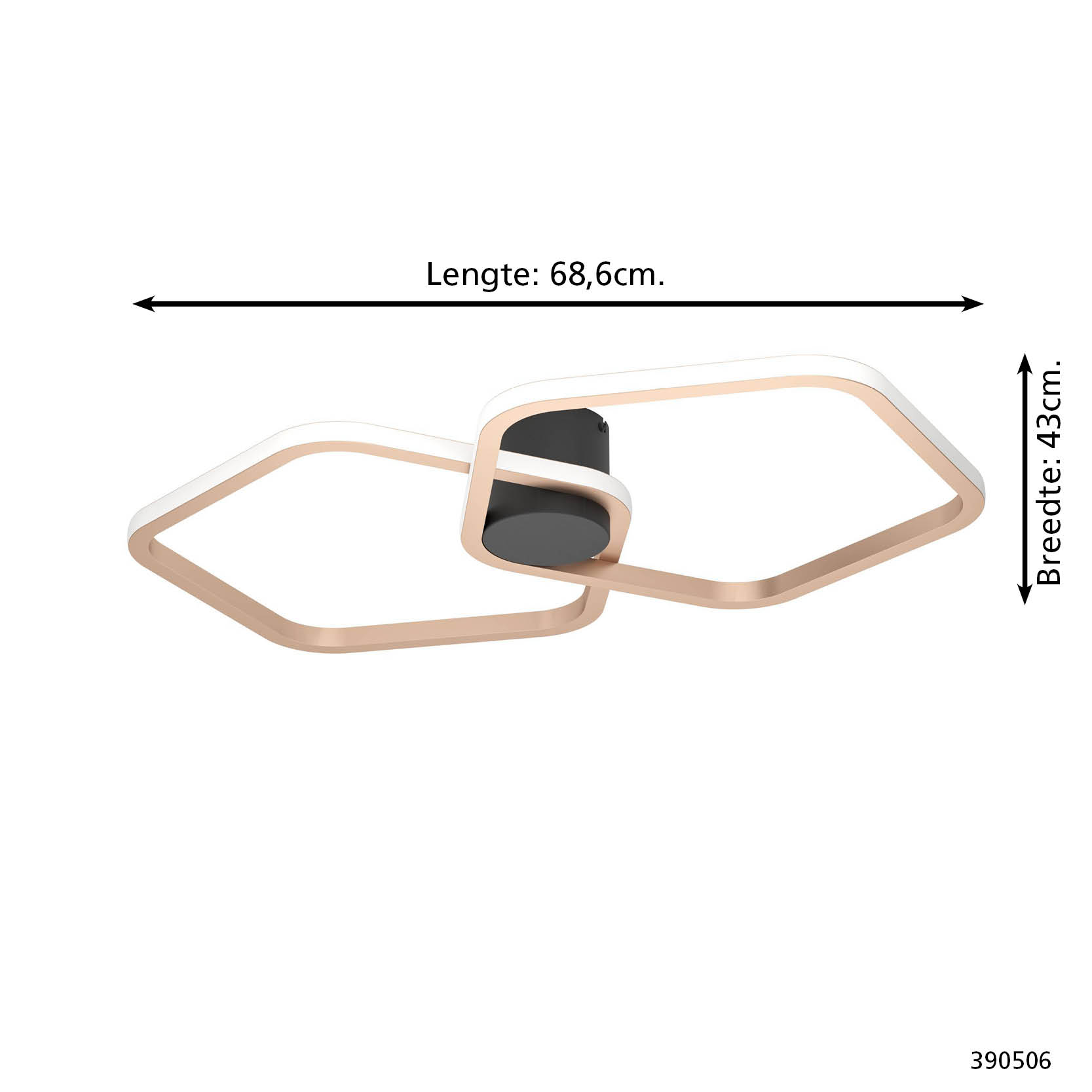 De plafondlamp heeft een lengte van 68,6 cm en breedte van 43 cm. Naast de plafondlamp bestaat de Estrella lampenserie uit een vloerlamp en bijpassend tafellamp.