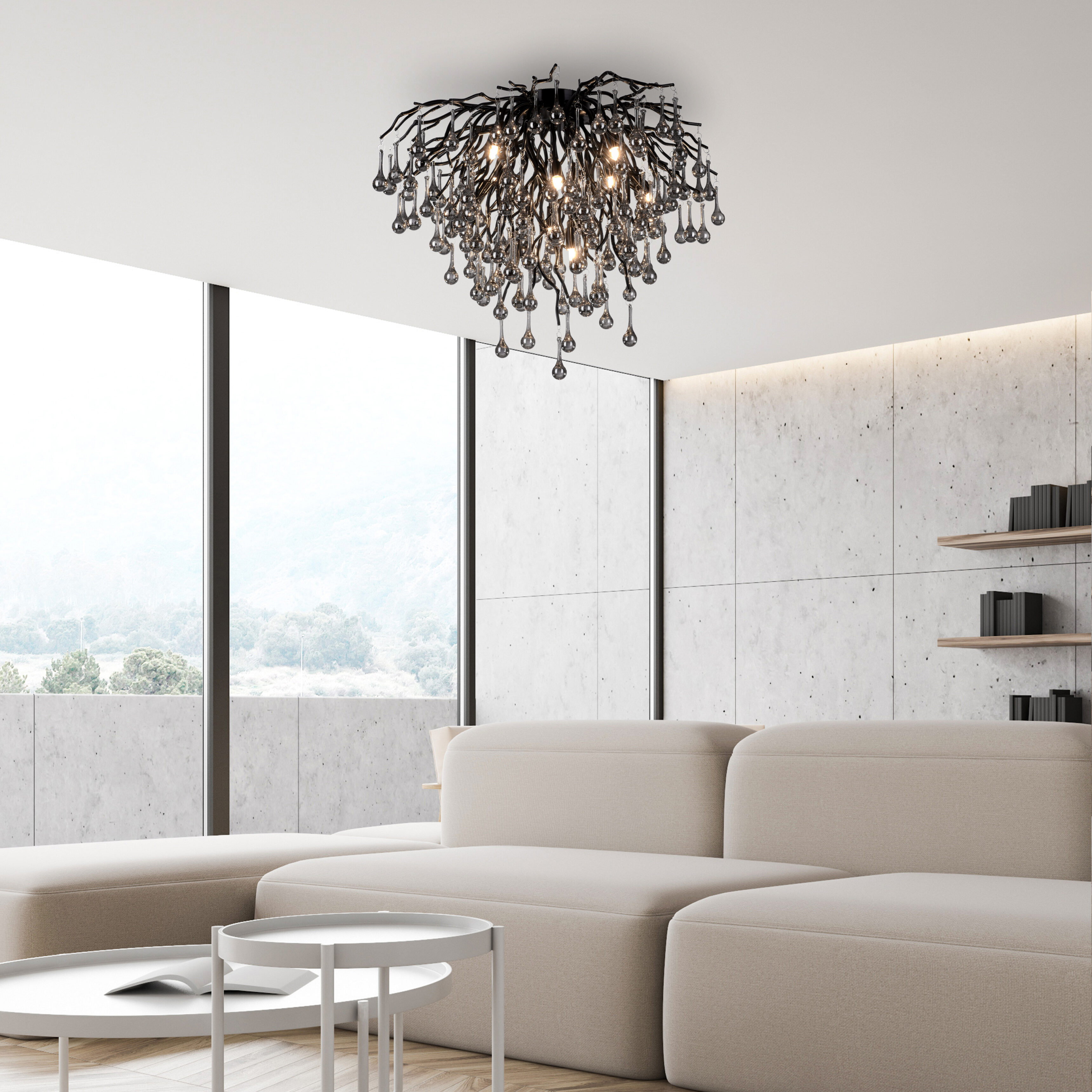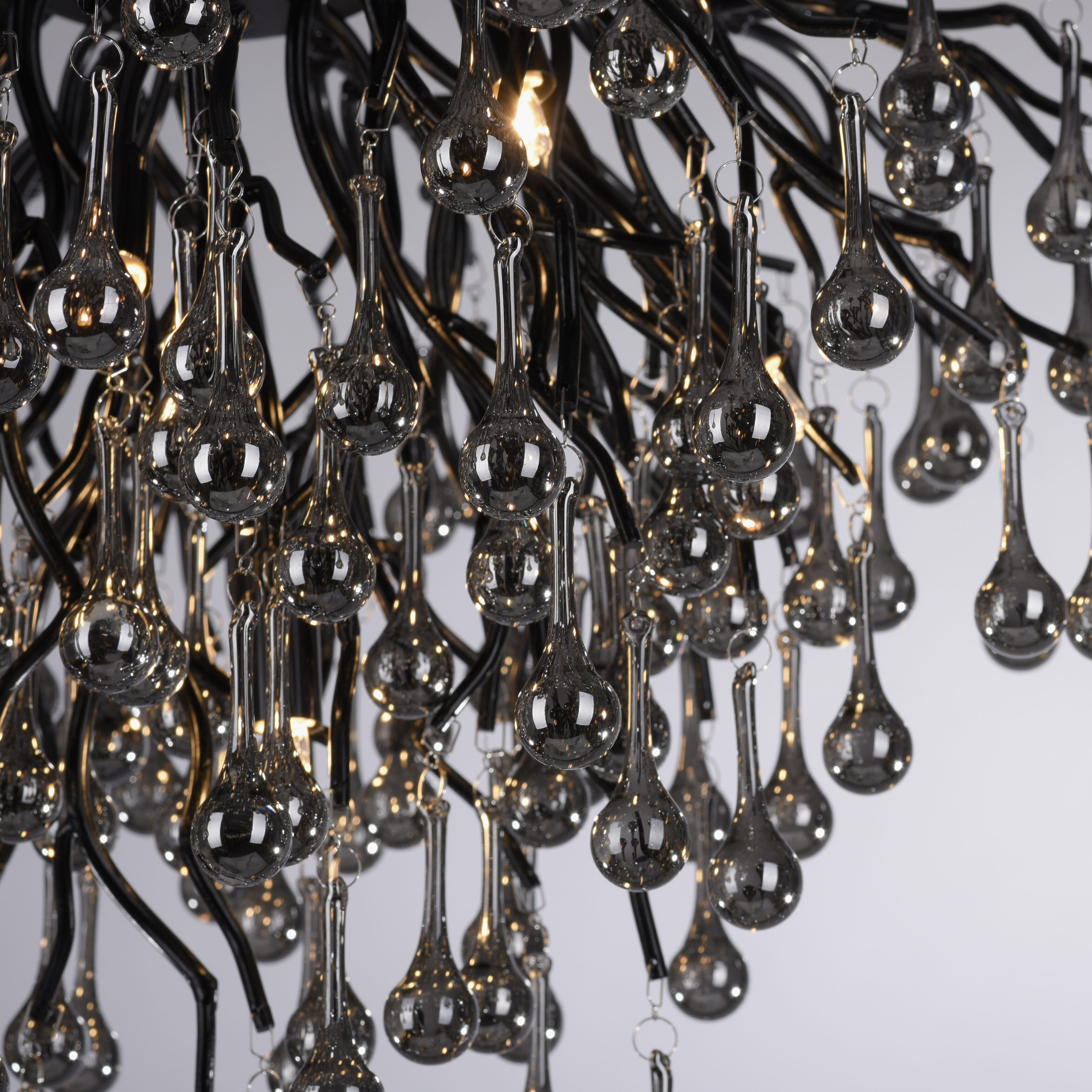 De indrukwekkende Icicle plafondlamp van Paul Neuhaus in een elegant zwarte kleur met vele glazen druppelvormige hangers in een smoke tint. De lamp geeft uw kamer een bijzondere esthetiek. De plafondlamp zorgt niet alleen voor uitstekende verlichting maar zorgt ook voor een prachtig lichtspel in uw woonruimte. De glazen hangers reflecteren het licht op een fascinerende manier en creëren een uitnodigende sfeer. Of de lamp nu, in de woonkamer, slaapkamer of gang plaatst, deze lamp zal zeker alle aandacht trekken en een vleugje luxe in elke kamer brengen. Ervaar de fascinerende combinatie van elegantie en lichtspel van de hanglamp. Laat u verleiden door zijn unieke charme en geniet van de buitengewone sfeer die hij in uw huis creëert.