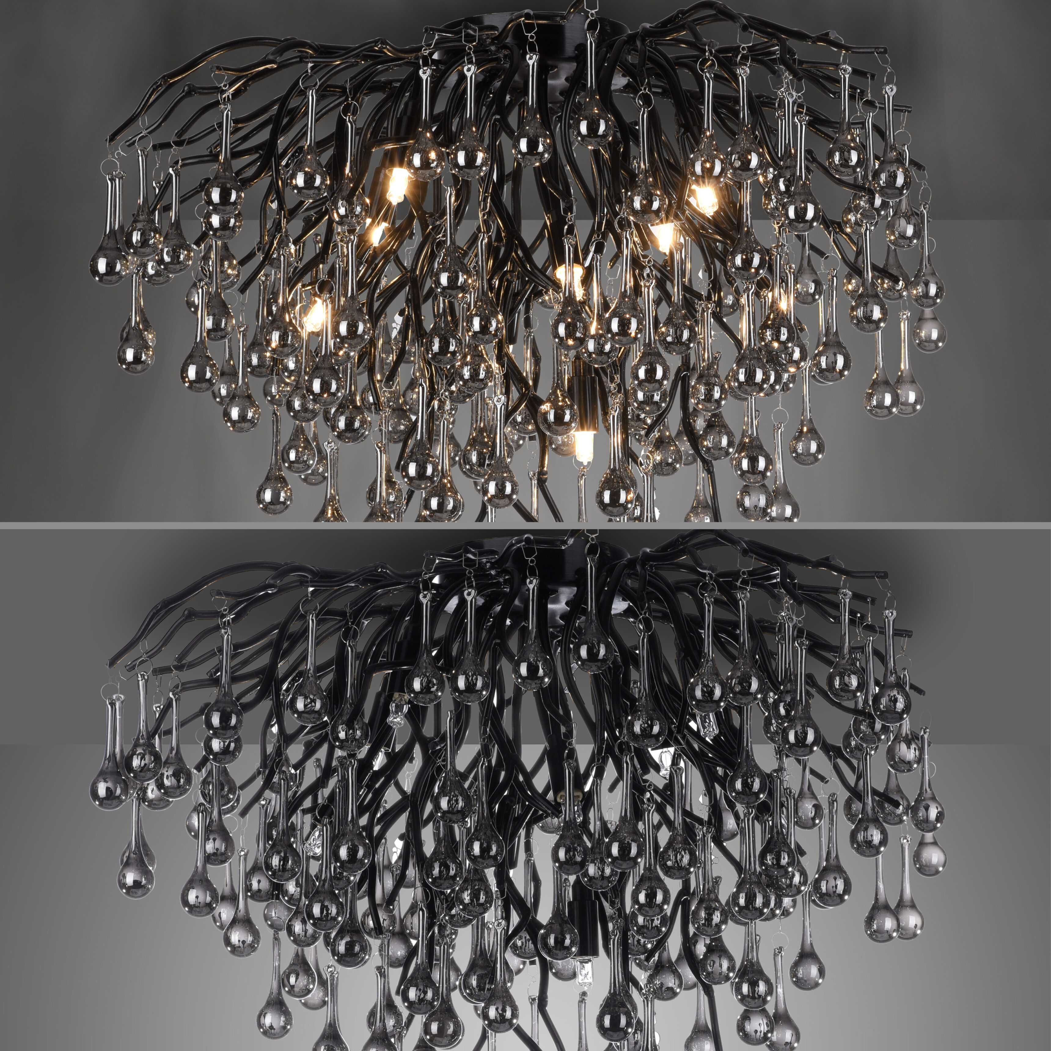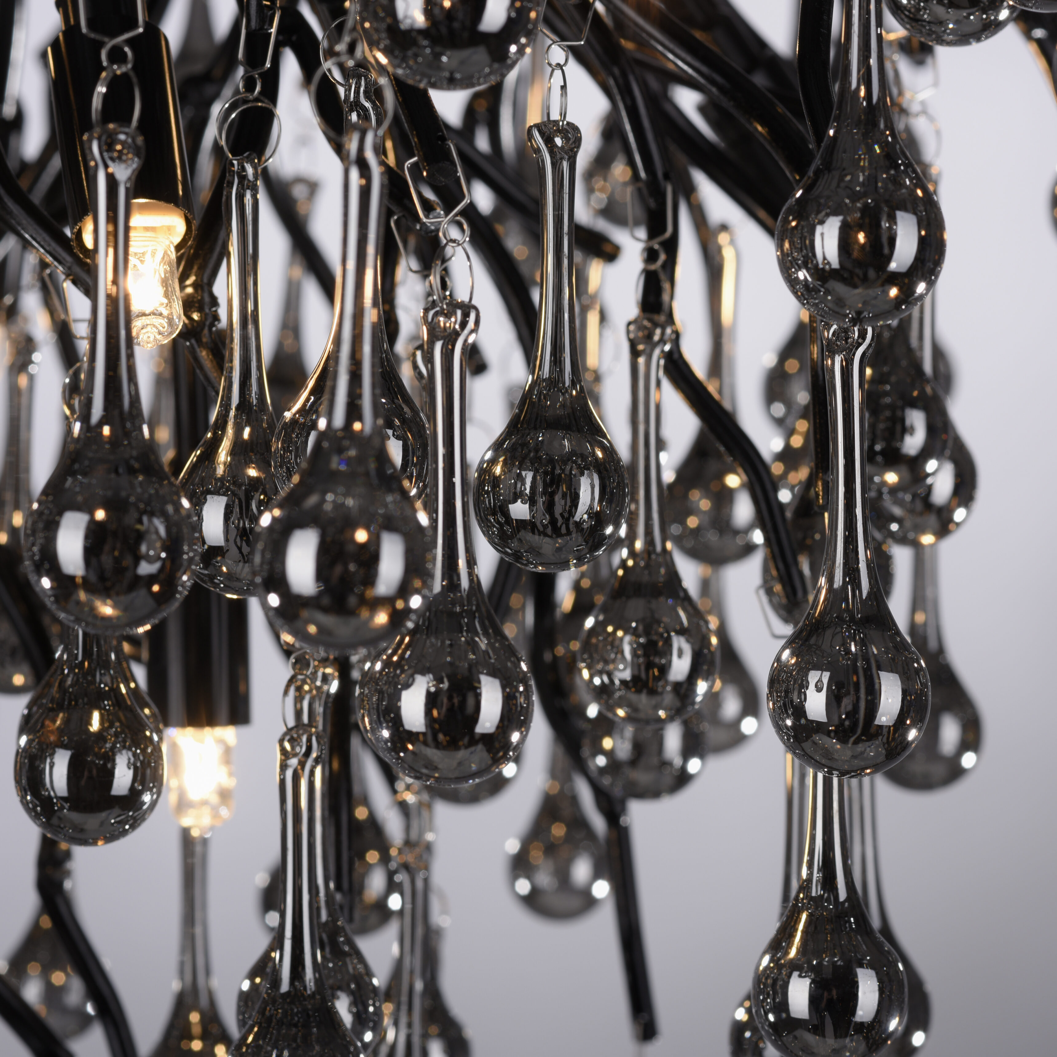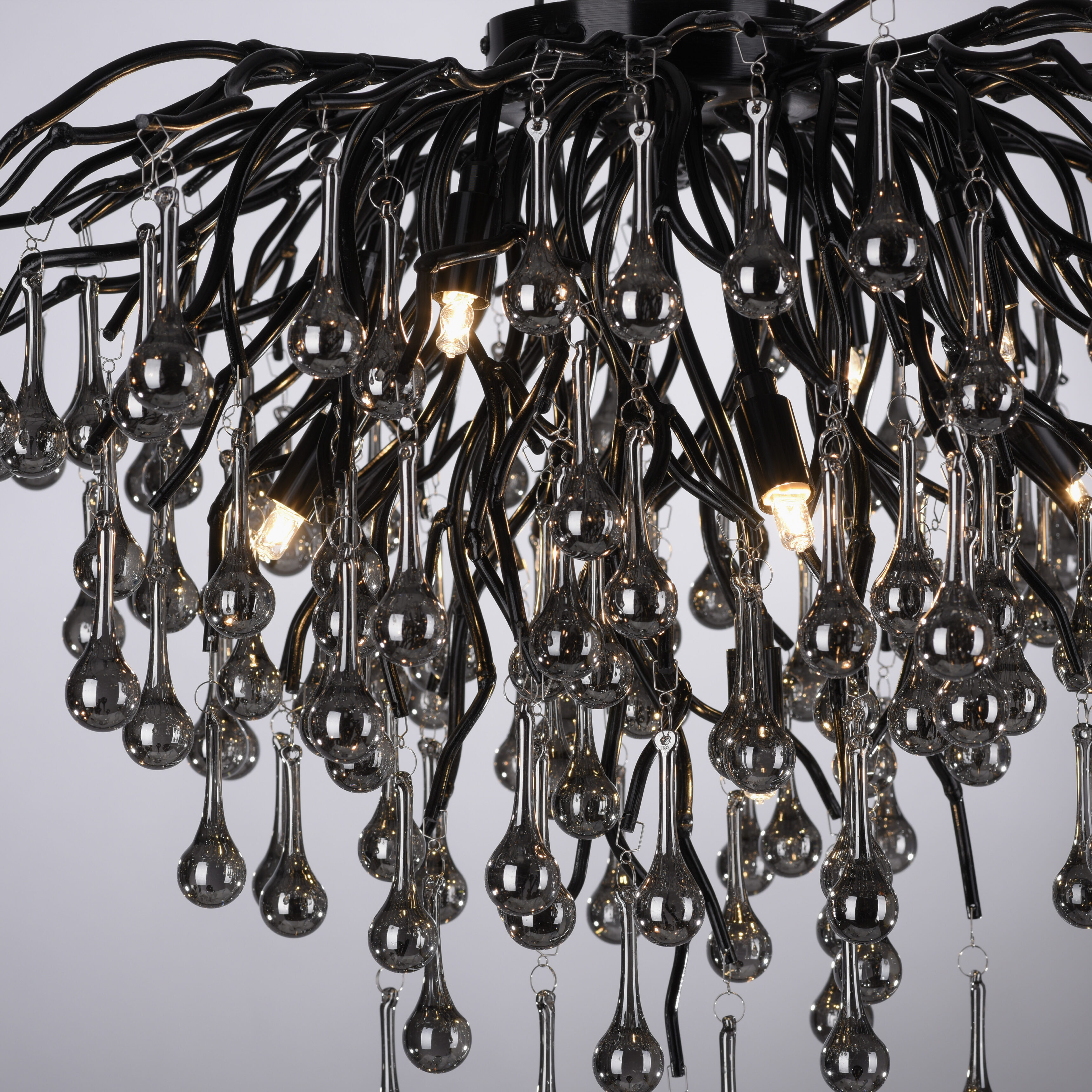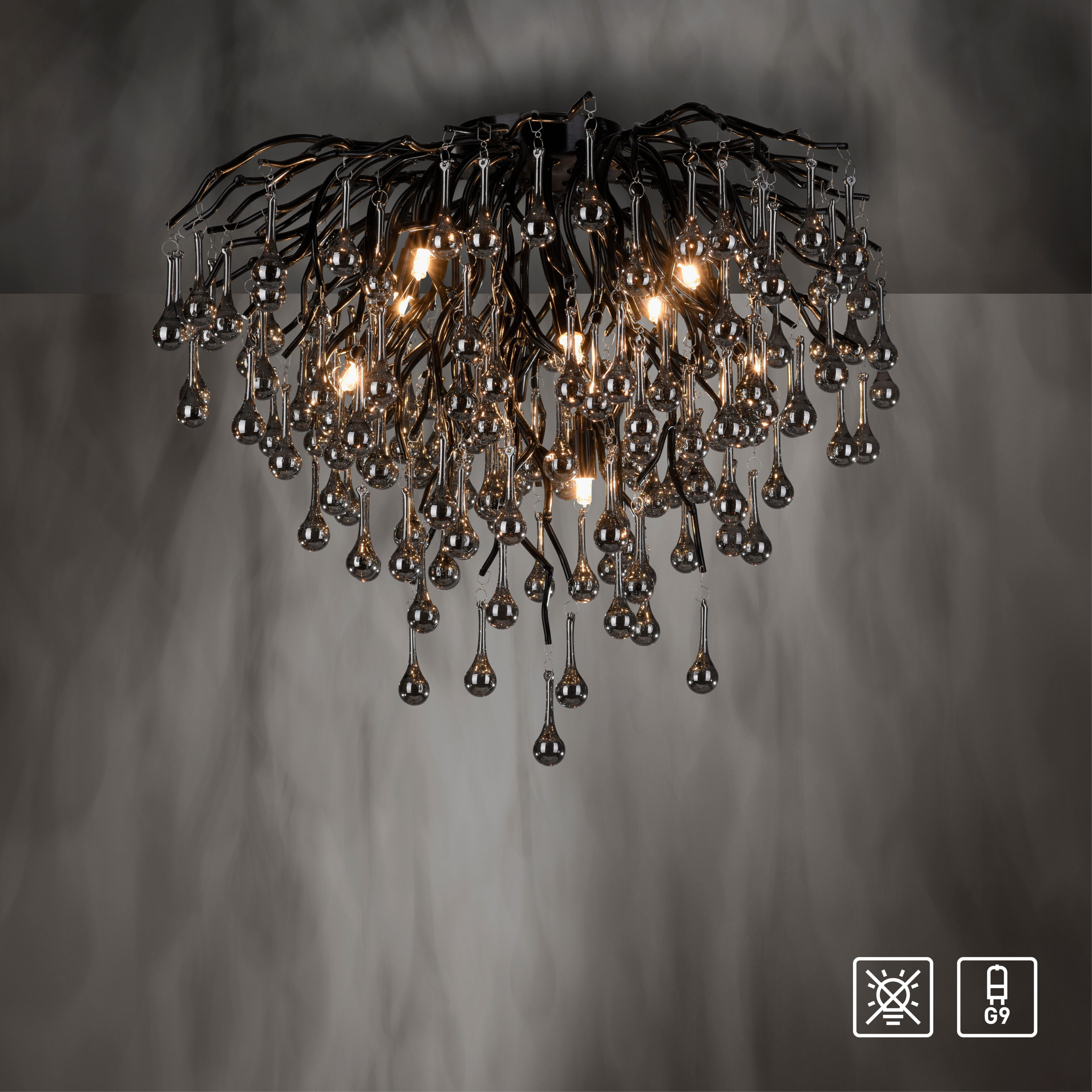 De indrukwekkende Icicle plafondlamp van Paul Neuhaus in een elegant zwarte kleur met vele glazen druppelvormige hangers in een smoke tint. De lamp geeft uw kamer een bijzondere esthetiek. Ervaar de fascinerende combinatie van elegantie en lichtspel van de hanglamp. Laat u verleiden door zijn unieke charme en geniet van de buitengewone sfeer die hij in uw huis creëert.