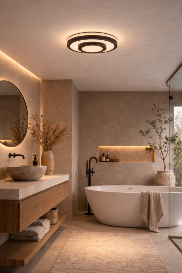 Met een IP44-beschermingswaarde is deze plafondlamp spatwaterdicht en daardoor ook zeer geschikt voor gebruik in vochtige ruimtes zoals de badkamer, hal of bijkeuken. Het compacte, vlakke ontwerp maakt de lamp ideaal voor ruimtes met een lagere plafondhoogte, terwijl het diffuse licht zorgt voor een gelijkmatige en comfortabele verlichting. De plafondlamp heeft een diameter van 35 cm en komst 10 cm van het plafond af.