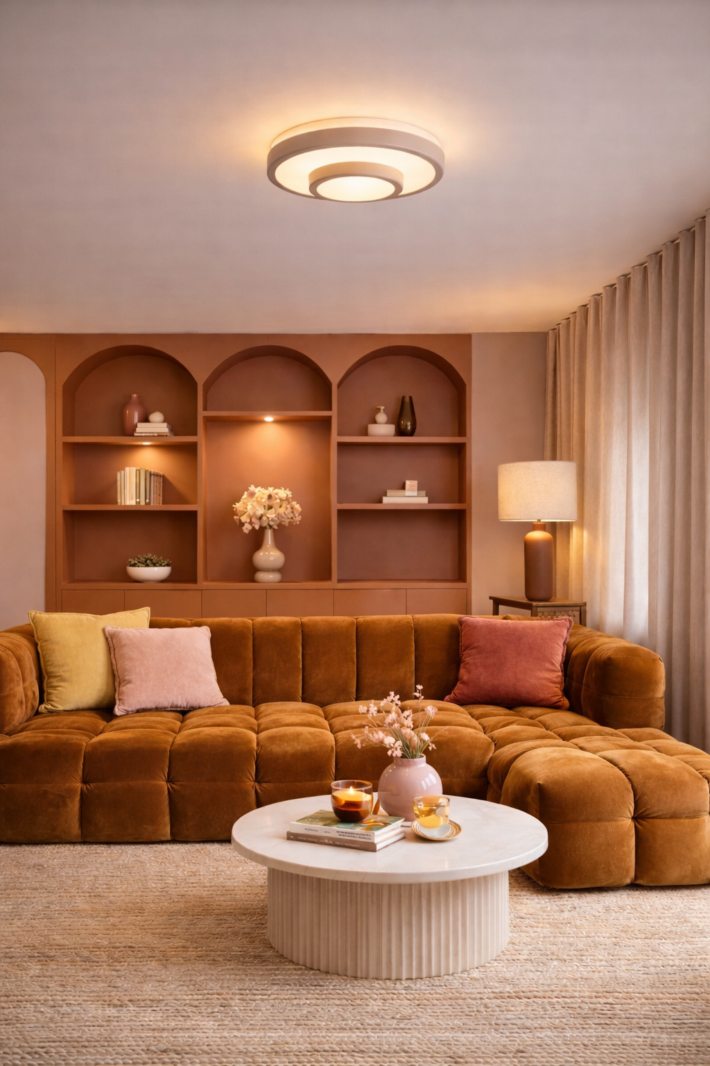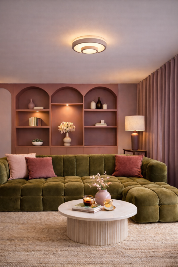 Deze stijlvolle plafondlamp Master van Highlight in zandkleur combineert een modern design met praktische functionaliteit. Het armatuur bestaat uit meerdere ronde elementen die elkaar subtiel overlappen, wat zorgt voor een speels en eigentijds karakter. De zachte zandkleurige afwerking in combinatie met het matte glazen lichtvlak creëert een rustige, warme uitstraling die moeiteloos past in diverse interieurstijlen – van modern tot Scandinavisch.