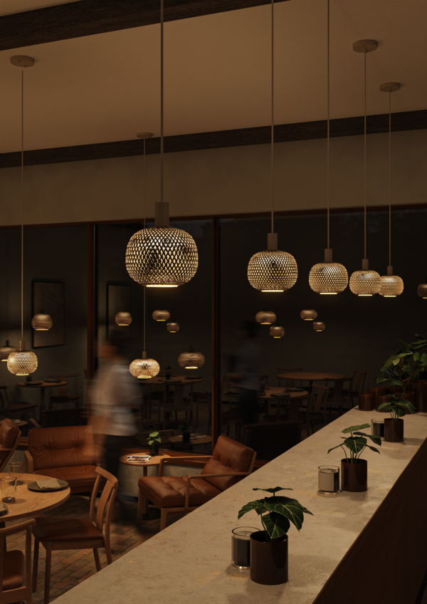 Deze lichtbron is een echte blikvanger boven de eettafel, in de woonkamer of in een trendy horecagelegenheid. De open structuur past perfect bij een industrieel, modern, Japandi of urban chique interieur. Het zwarte metaalgaas design zorgt voor een stoer contrast, maar komt ook prachtig tot zijn recht in warme, natuurlijke ruimtes dankzij de luchtige uitstraling.