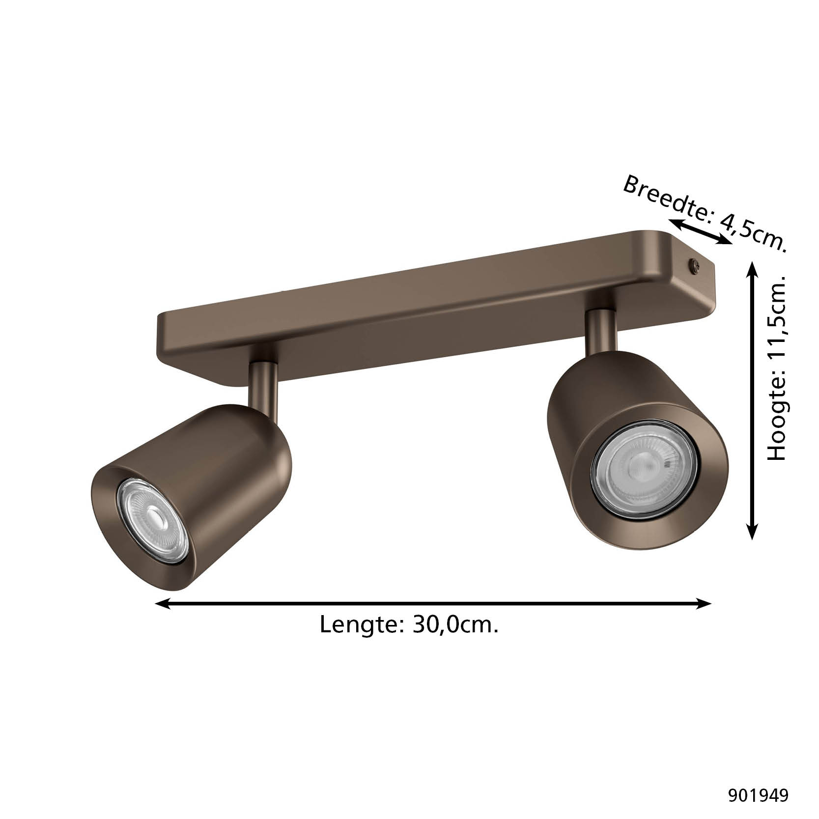 Met het heldere, minimalistische ontwerp brengt de Camaldoli 2-lichts spot van Eglo stijlvolle accenten aan het plafond. De donker-bronskleurige afwerking geeft de lamp een elegante, warme uitstraling die perfect past bij zowel moderne als klassieke woonstijlen. De twee spots kunnen onafhankelijk van elkaar worden gedraaid en gekanteld, zodat je het licht precies kunt richten waar je het nodig hebt – of dat nu in de hal, de keuken of de woonkamer is. De lamp is geschikt als hoofdverlichting en als sfeerverlichting.