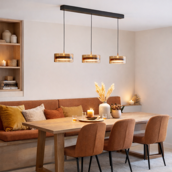 Door het amberkleurig glas van Ø 20 cm weergeeft de tafellamp warm en sfeervol licht. De tafellamp is namelijk voorzien van een geïntegreerde LED met een vermogen van 18W en weergeeft een warm witte tint licht van 2700 Kelvin. De lamp heeft een lichtopbrengst van 1620 Lumen. Dankzij de geïntegreerde LED-verlichting met up- en downlight ontstaat er zowel directe als indirecte verlichting – ideaal voor functioneel én sfeervol gebruik.