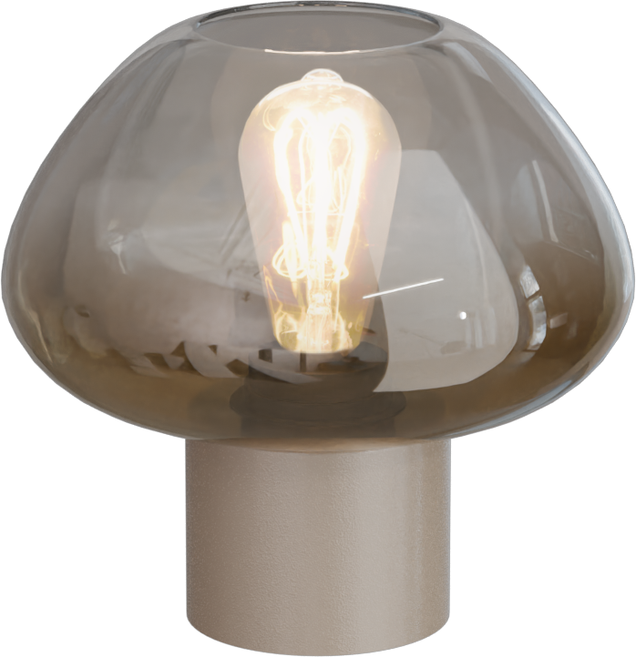 Het beige armatuur sluit naadloos aan bij de glazen kap en versterkt de rustige uitstraling van de lamp. Dankzij het compacte formaat neemt deze tafellamp weinig ruimte in, terwijl hij toch voldoende licht biedt voor dagelijks gebruik of als aanvullende sfeerverlichting. De E27 fitting geeft u de vrijheid om zelf de gewenste lichtbron te kiezen, zodat u de lichtkleur en intensiteit kunt afstemmen op uw persoonlijke voorkeur.