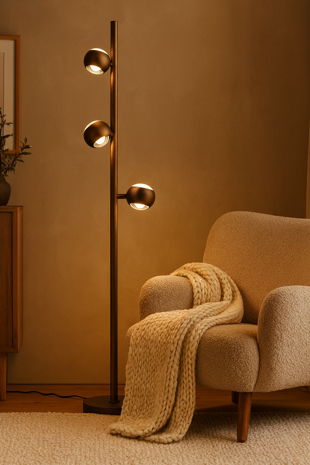 De Orbit vloerlamp heeft een stijlvol design waarbij de drie lichtbollen zowel licht aan de bovenzijde als aan de onderzijde weergeeft. Naast stijlvol is de vloerlamp ook functioneel en heeft bijzonder veel handige functies. Zo hebben de kantelbare lichtbollen een geïntegreerd LED-lamp van 8 Watt, met een aanpasbare kleurtemperatuur van 2300/3000/4000 Kelvin en een lichtopbrengst van 2400 Lumen. Elke bol produceert afzonderlijk 800 lumen. Perfect voor sfeerverlichting vanuit een bepaalde hoek in de kamer of om simpelweg een boek te lezen op de bank.